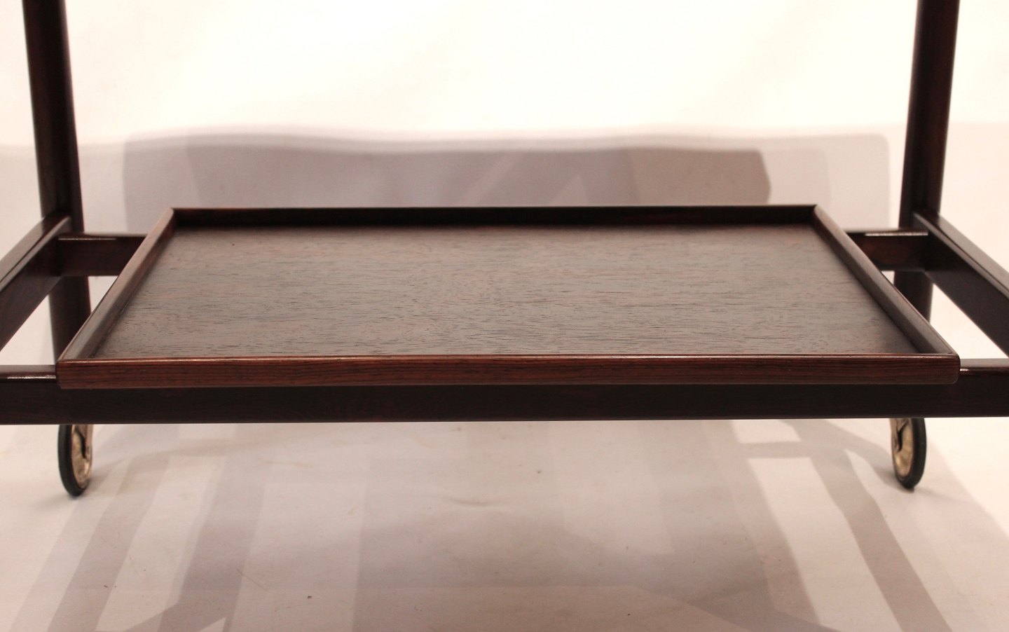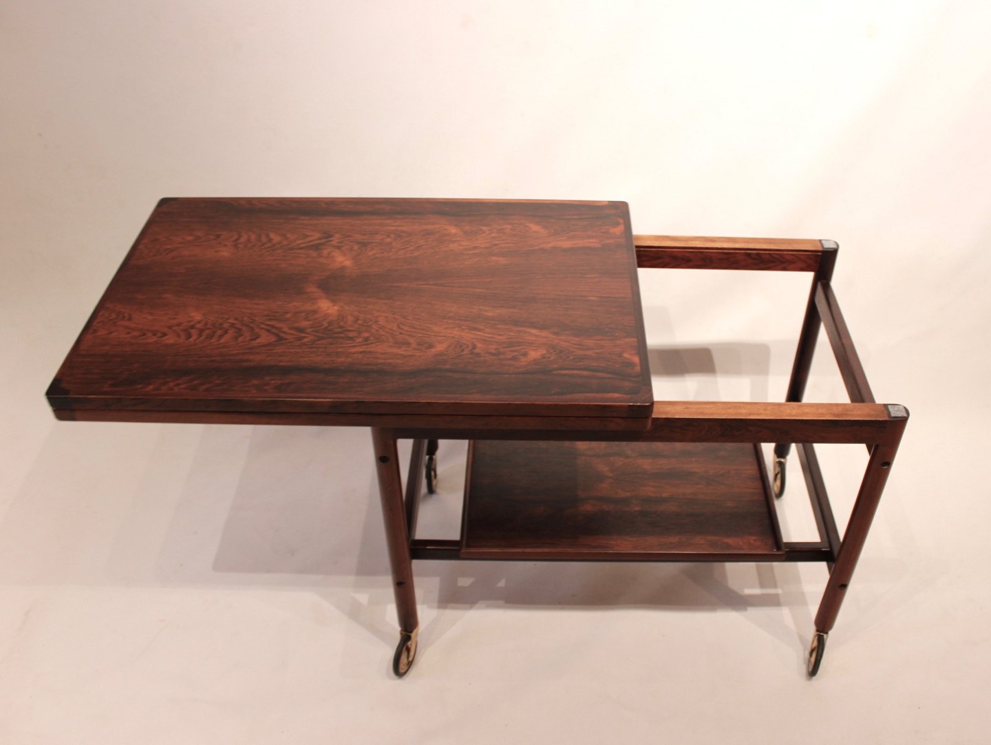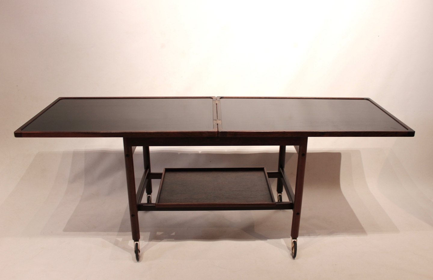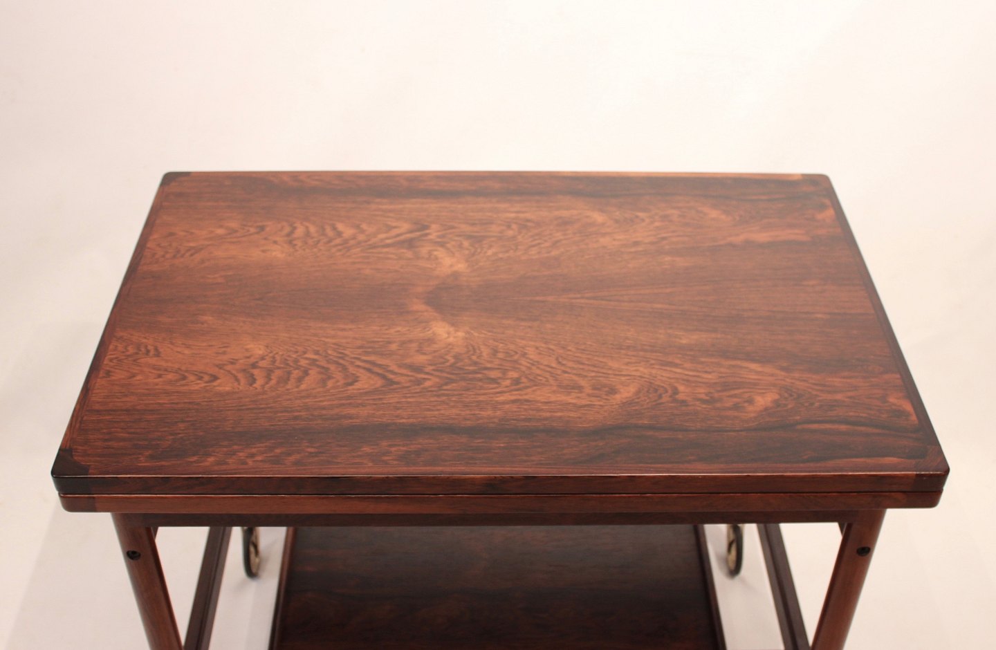 Table on wheels in rosewood of danish design from the 1960s. The table can be extended and is in great vintage condition.
