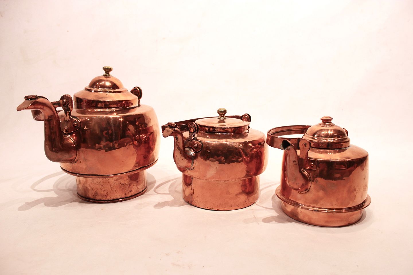 Antique copper teapots in different sizes and all in great vintage condition.