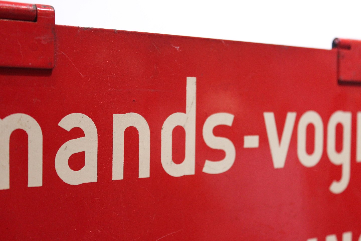 SoldAntique red and black metal sign used in busses, "entrance up front". The sign is in great vintage condition.
