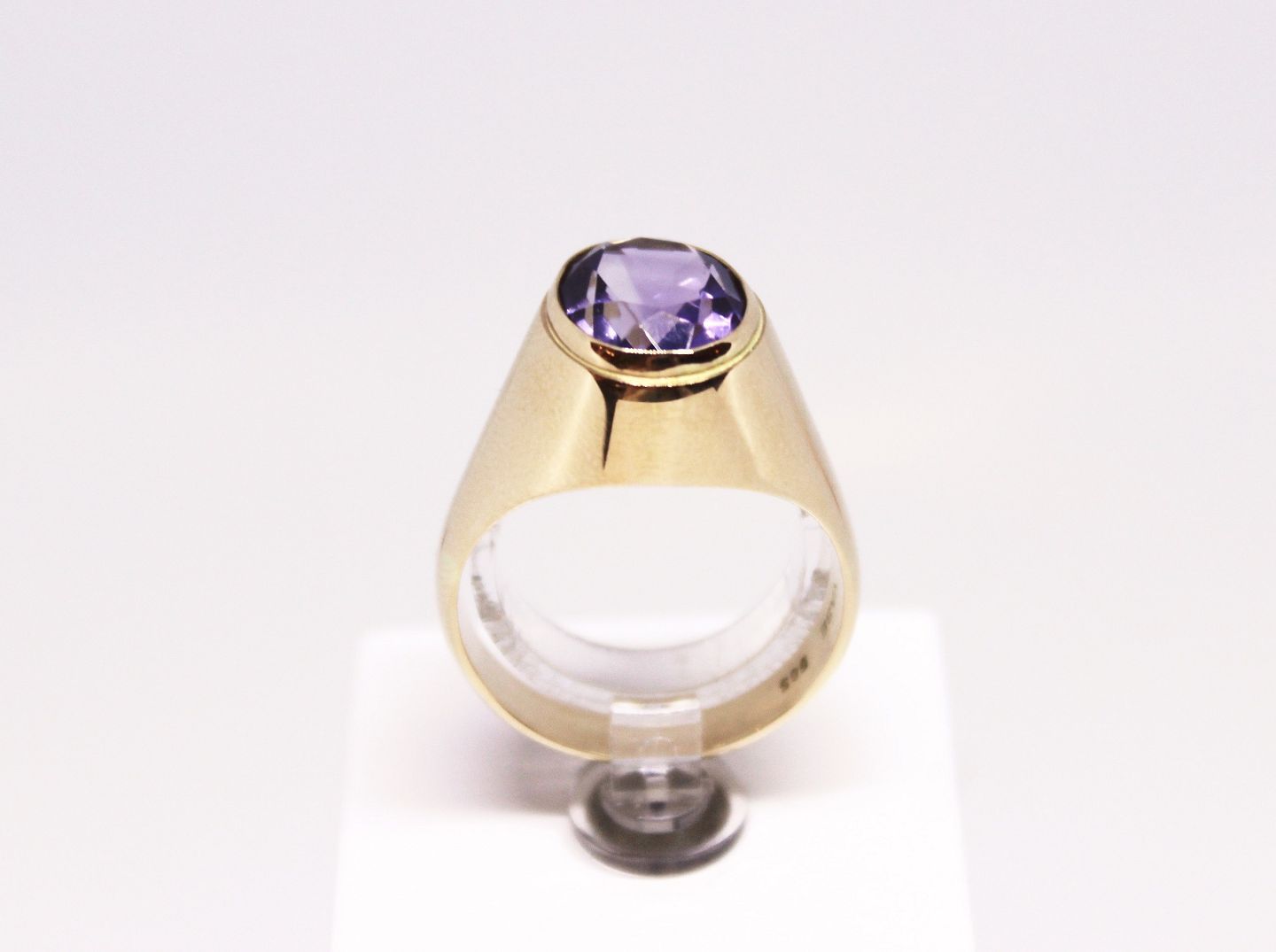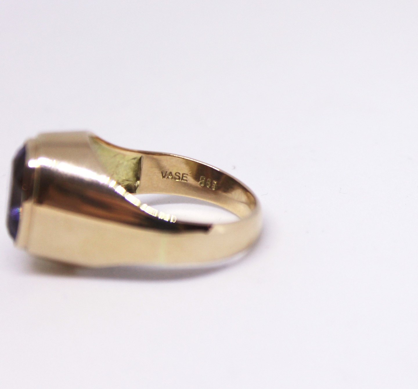 Ring af 14 kt. guld dekoreret med ametyst og stemplet VASA.