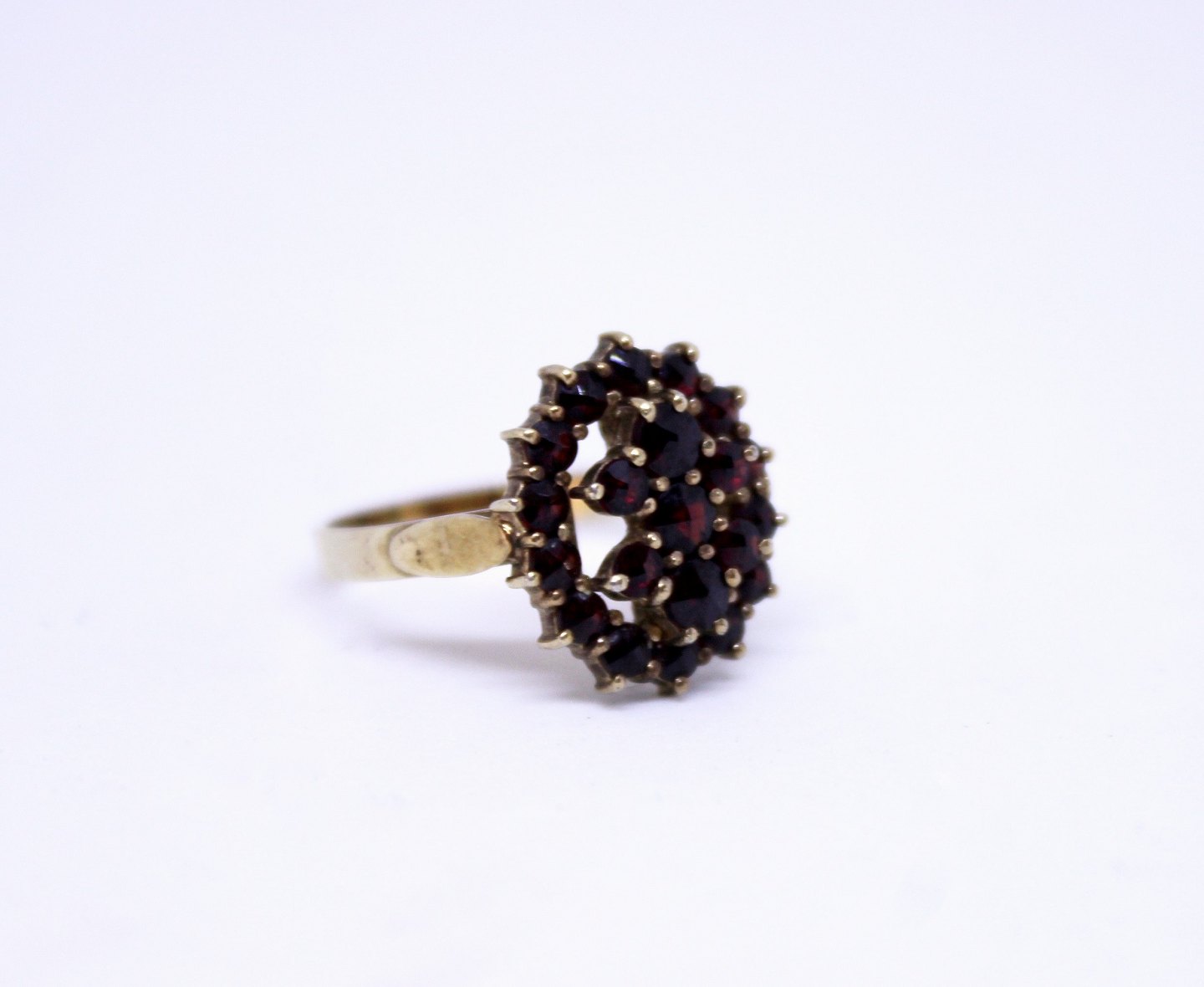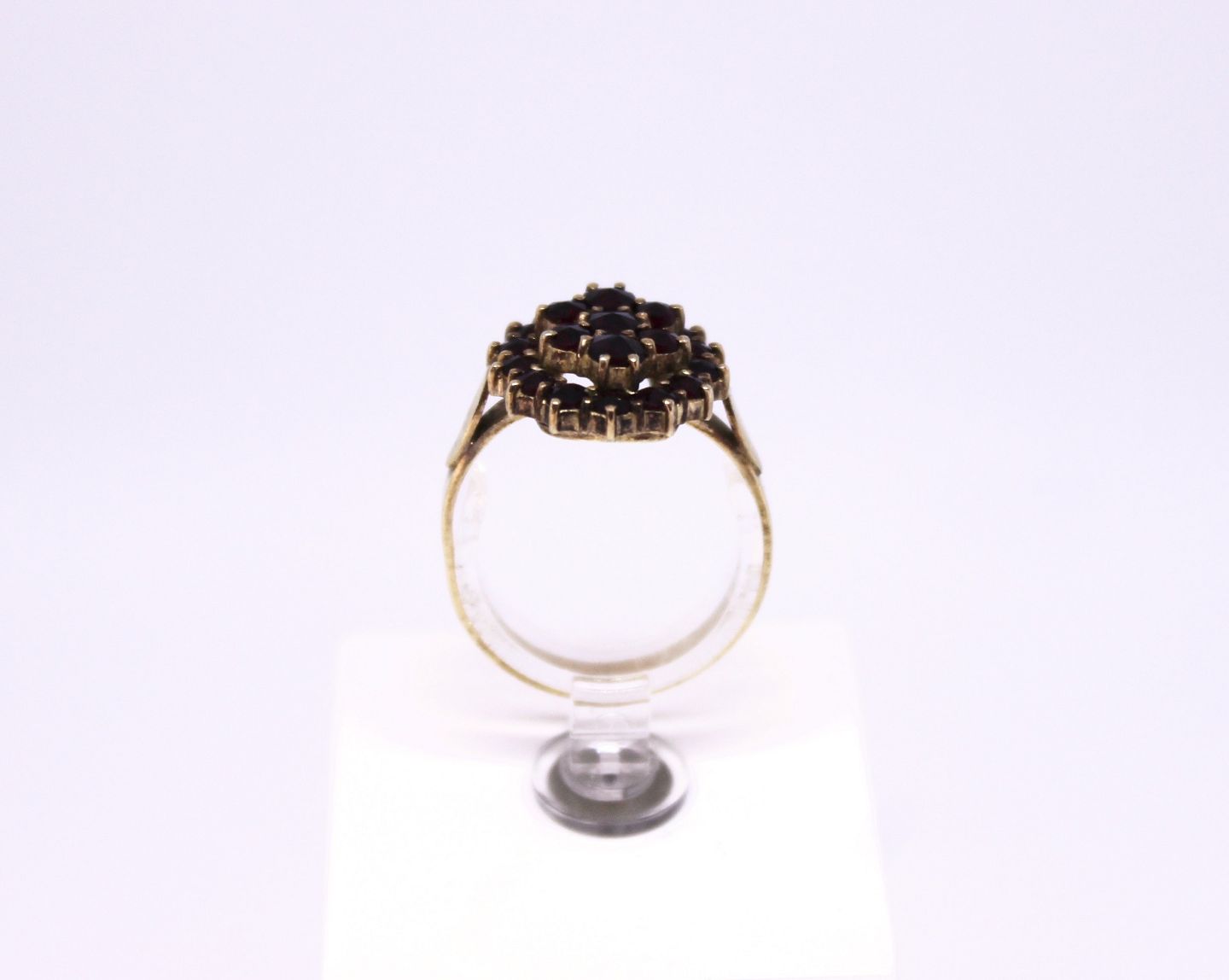 Ring of gilded 830 silver decorated with garnets and stamped AP.