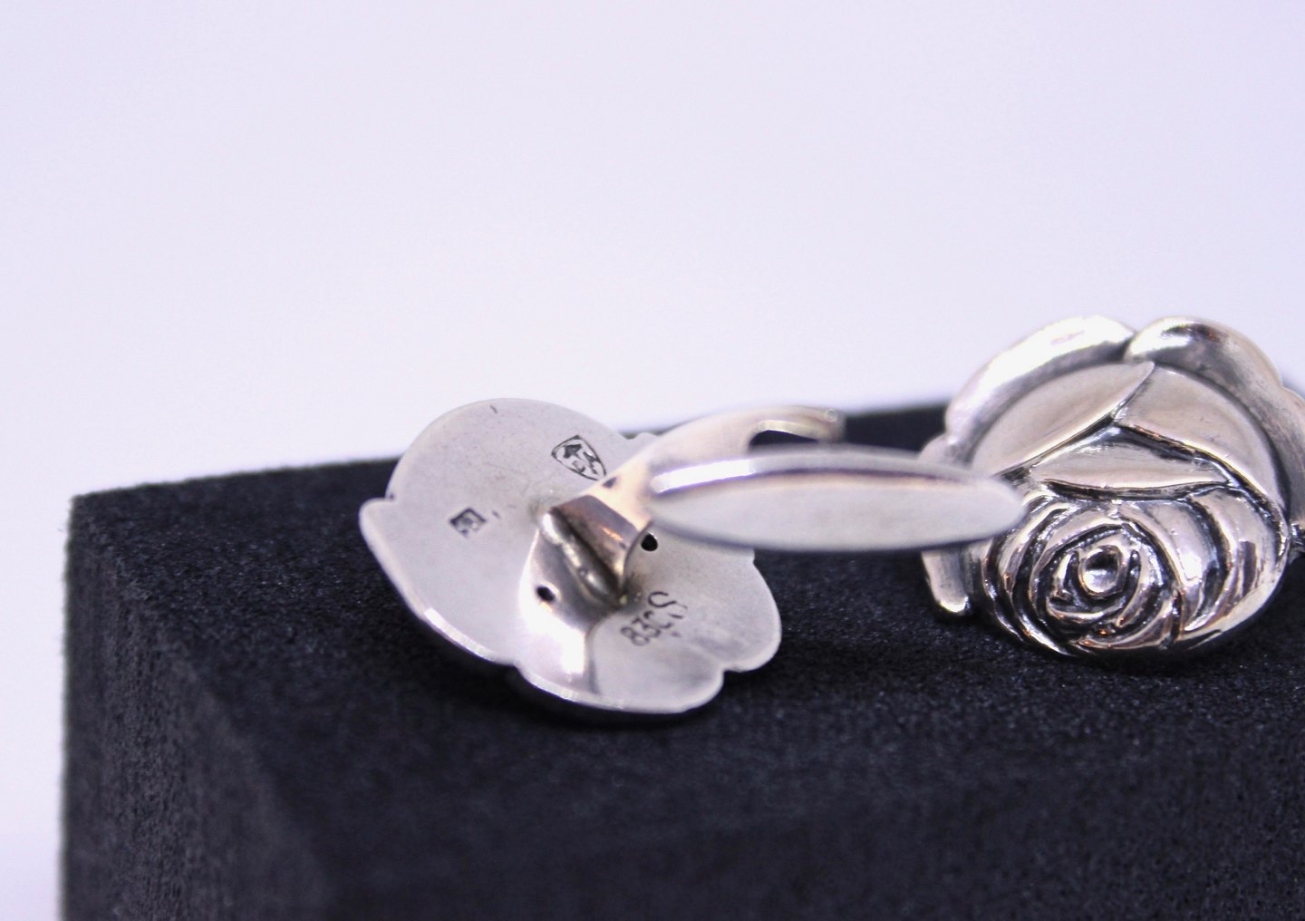 A set of cuflinks of 830 silver and shaped as roses.