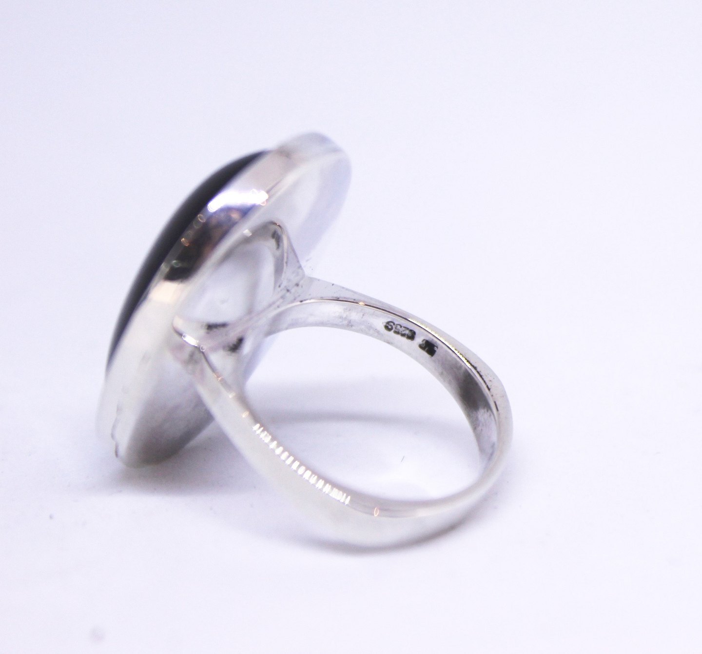 SolgtRing dekoreret med stor sort onyx sten og af 925 sterling sølv. Ringen er i flot brugt stand.