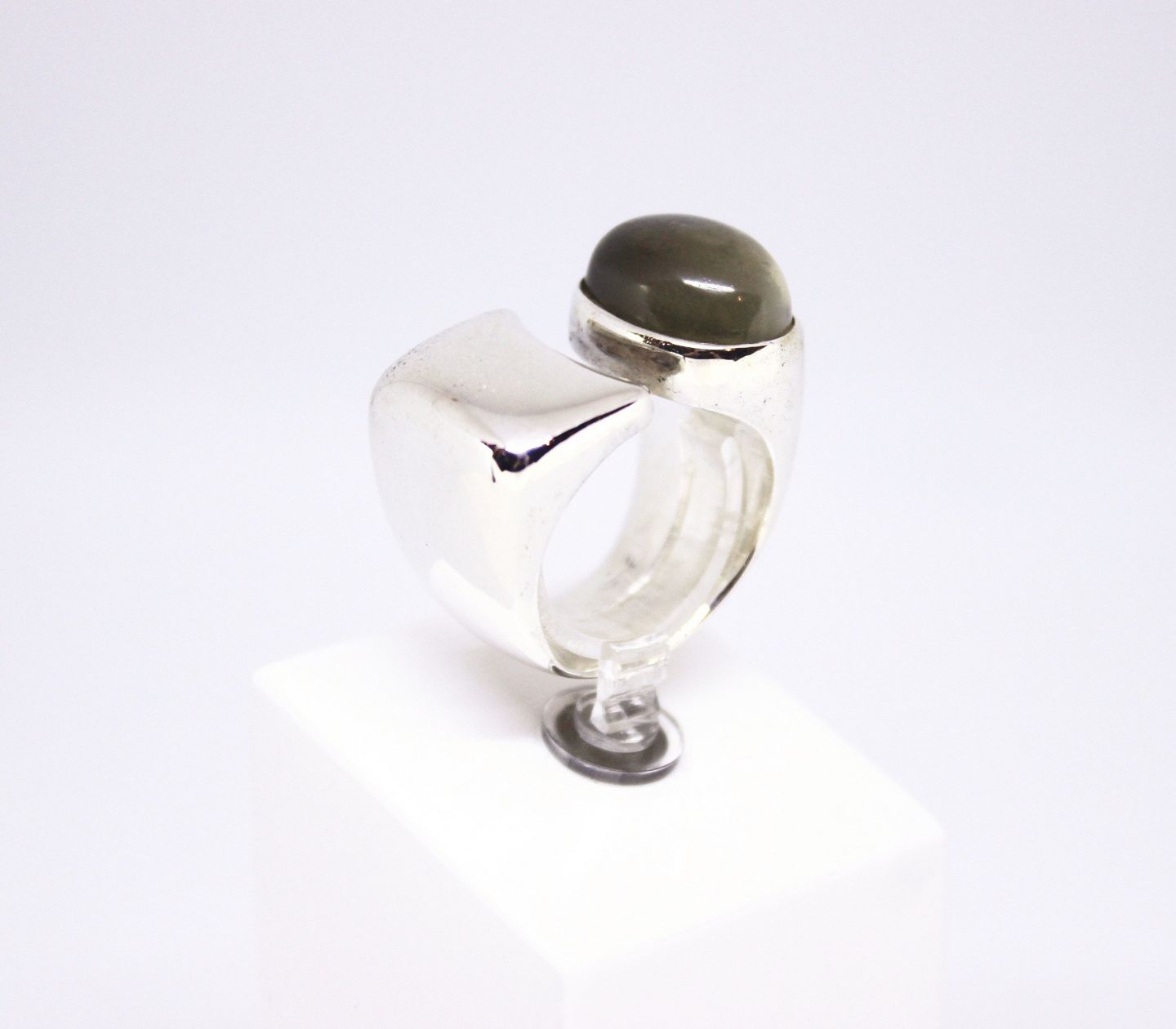 Ring of 925 sterling silver and decorated with green jade, stamped EIV.