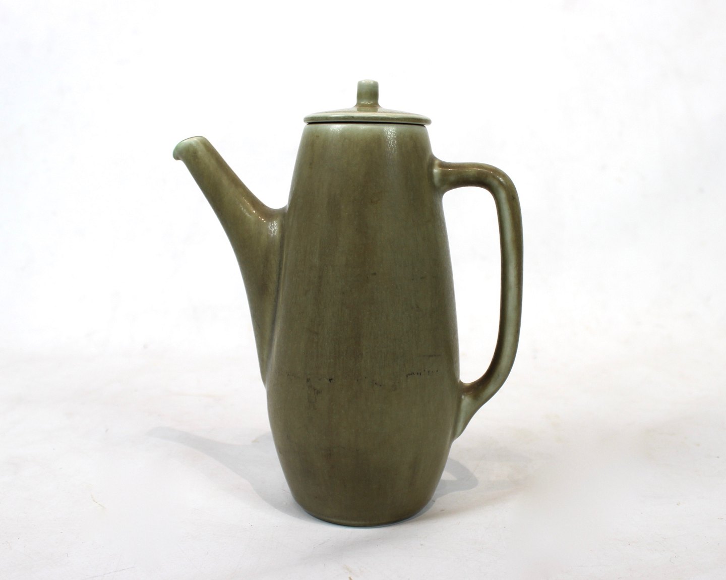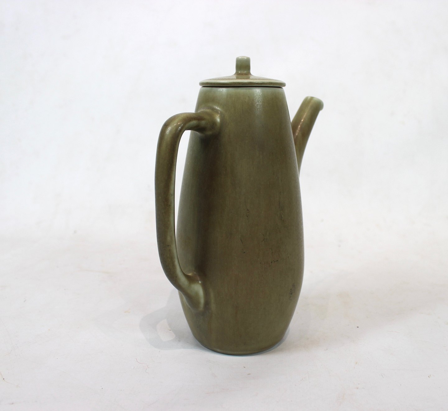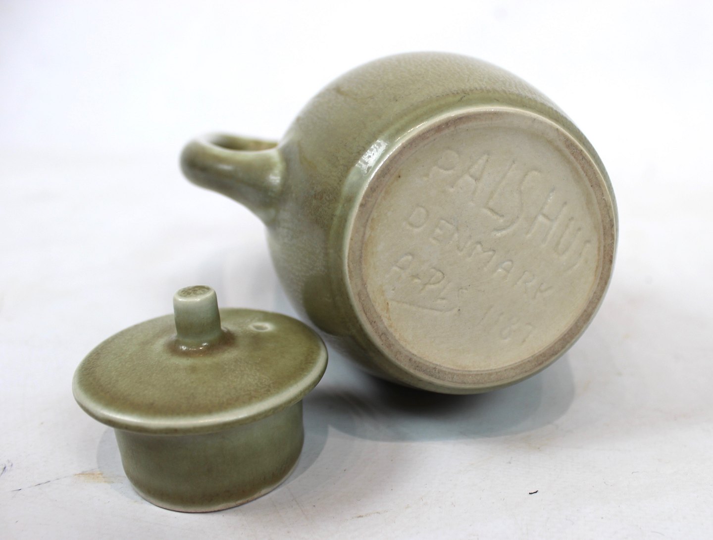 SoldCeramic jug with dark green glaze by Palshus and numbered, 1187. The jug is in great vintage condition.