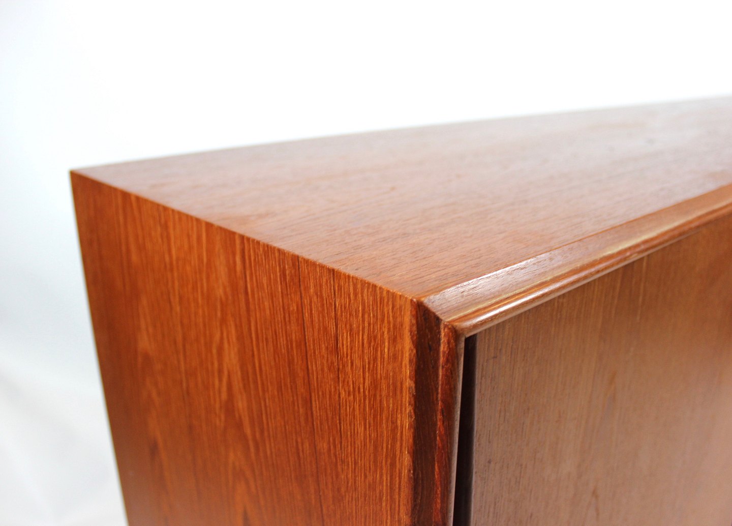 Denne teaktræsskænk, er et tidløst eksempel på dansk design fra 1960'erne, udstråler elegance og funktionel sofistikation. Fremstillet af førsteklasses teaktræ, har den en varm og rig farvetone, der forstærker ethvert interiør.