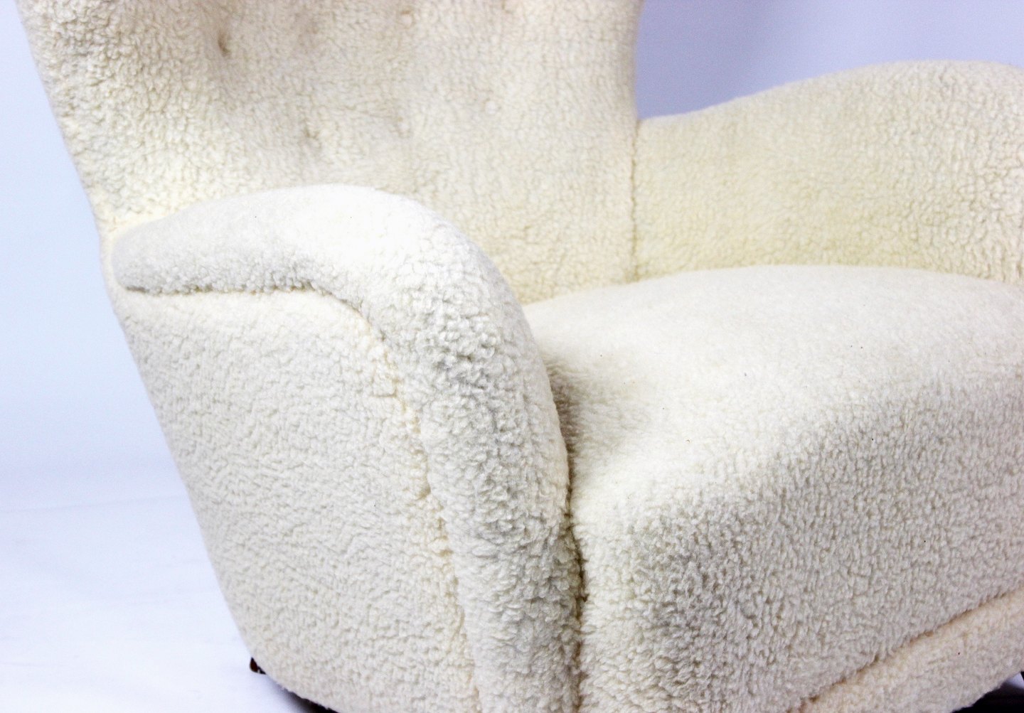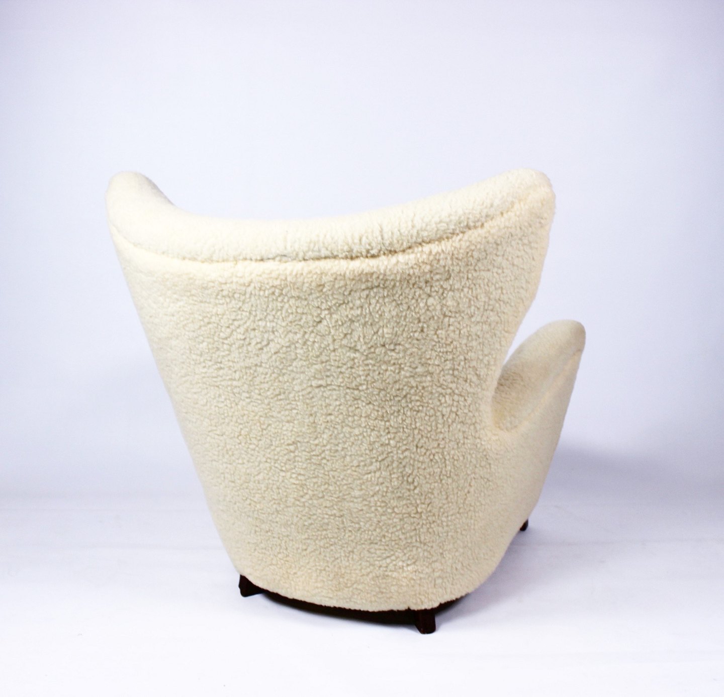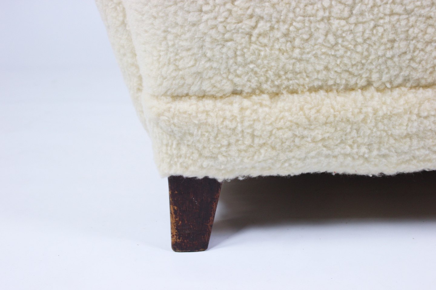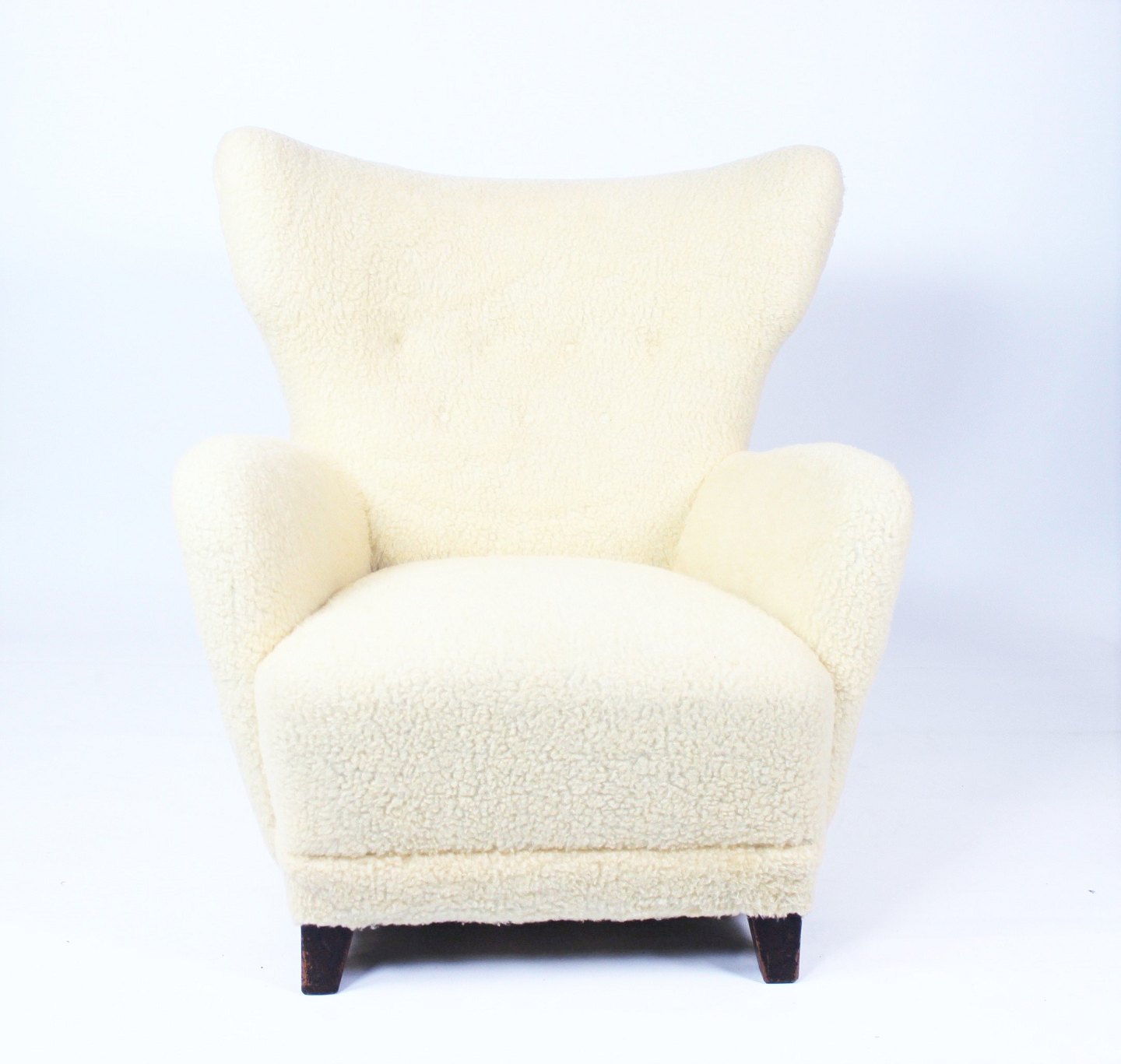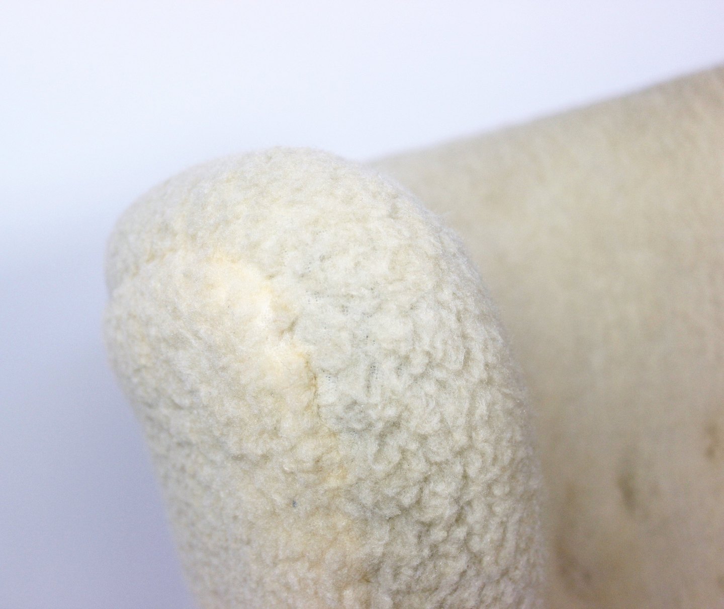 Hvilestol fra omkring 1930erne og nypolstret med fåreuld.