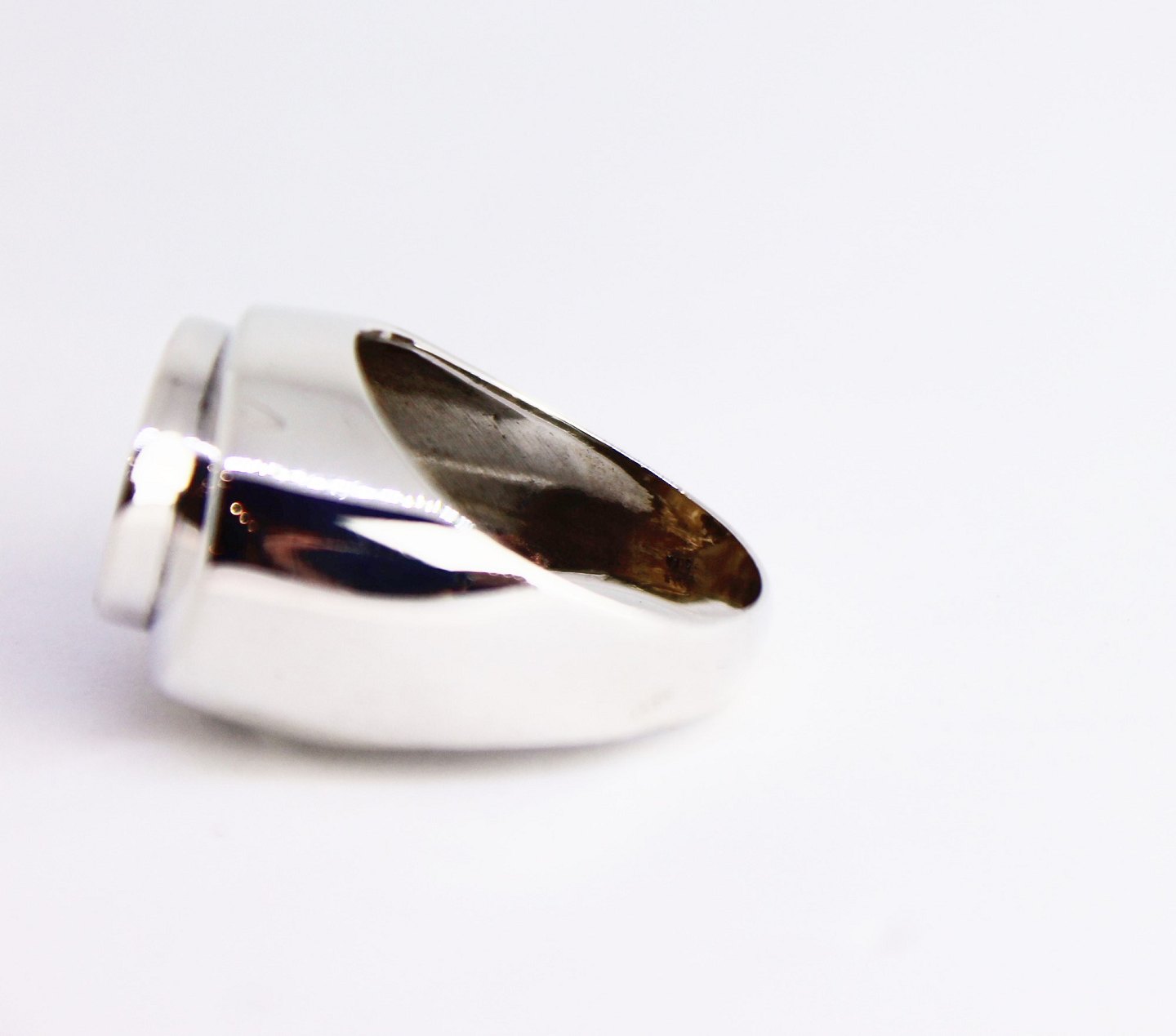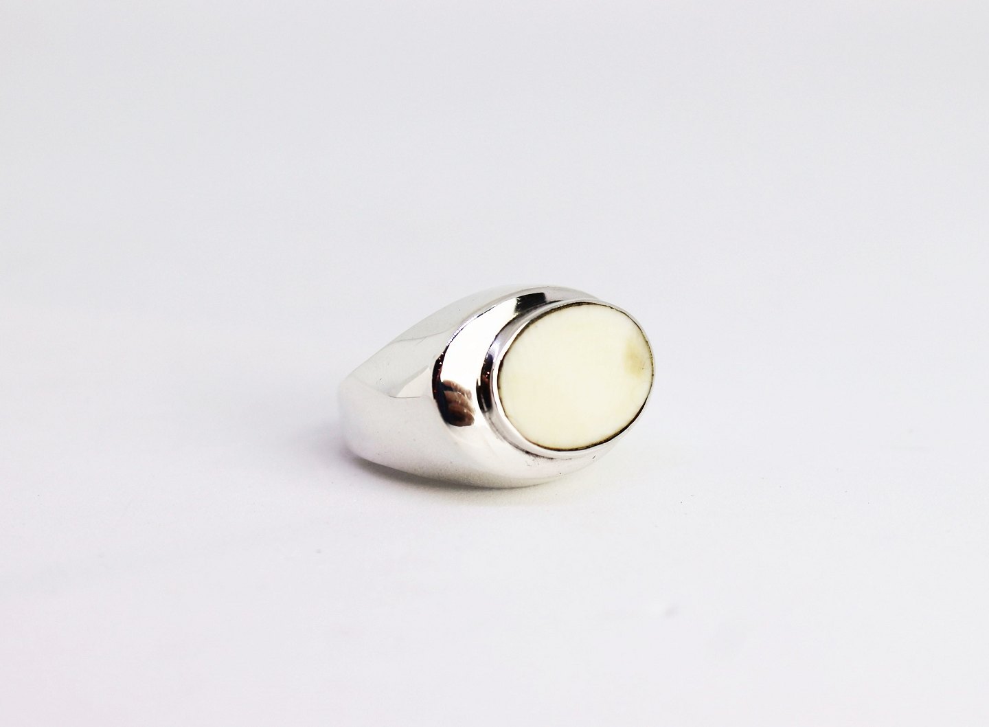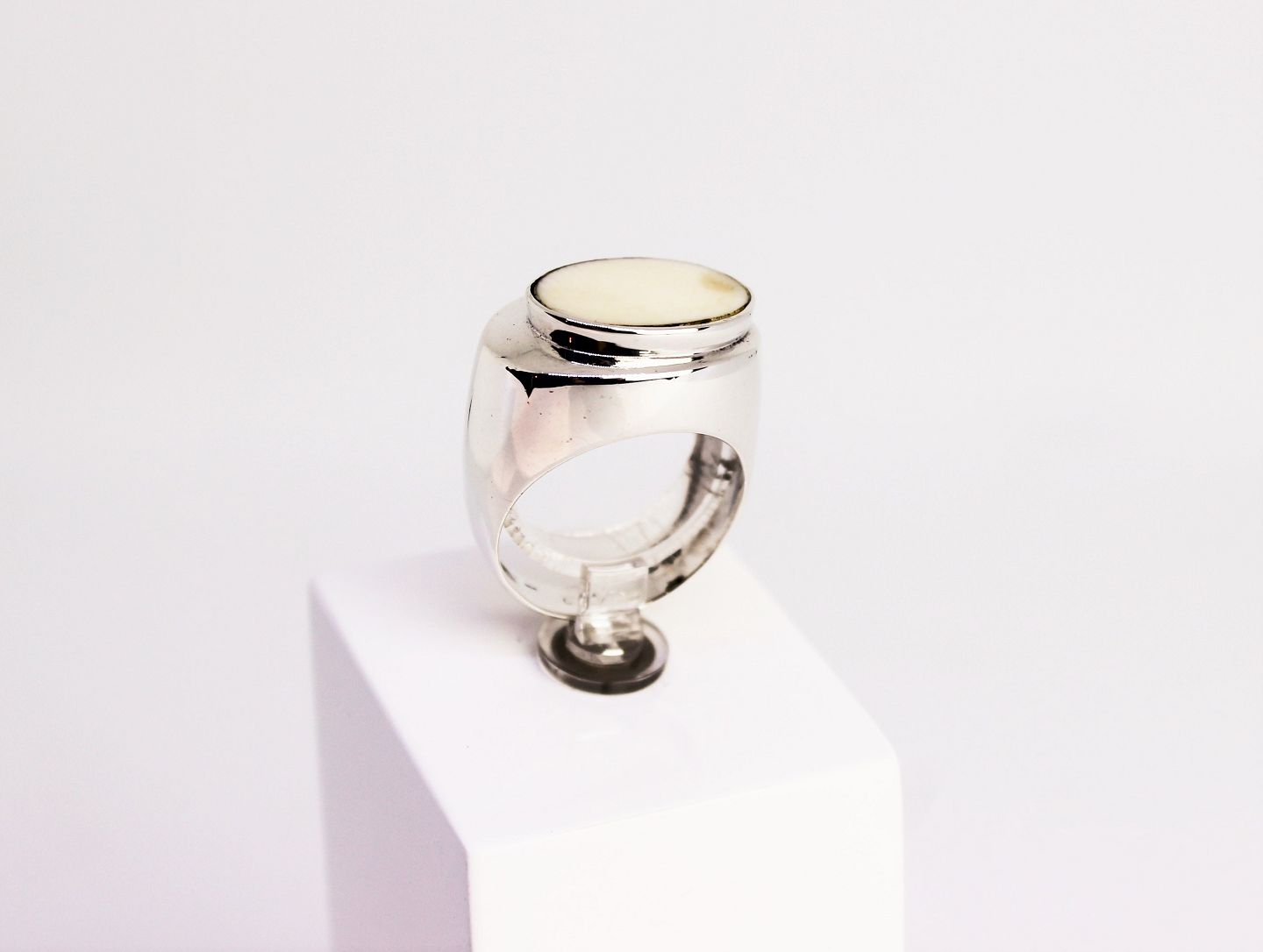 Ring af 925 sterling sølv dekoreret med hvid Jade og stemplet CA.