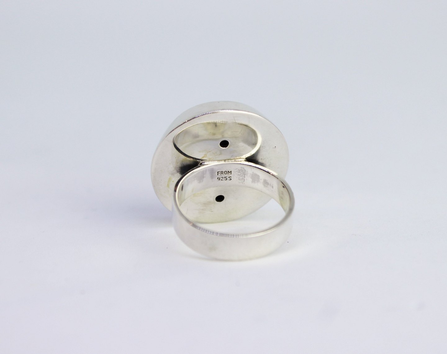 Ring of 925 sterling silver decorated with a piece of amber and stamped by N.E. From.