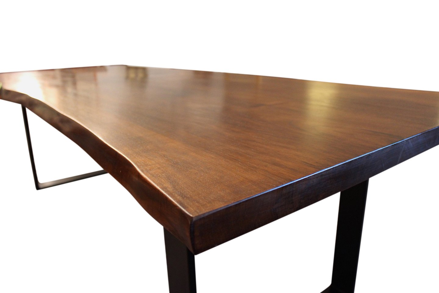 Please contact us for price informationPlank table of walnut and black metal frame, made of two planks with natural edges. The table is of our own design and newly manufactured.