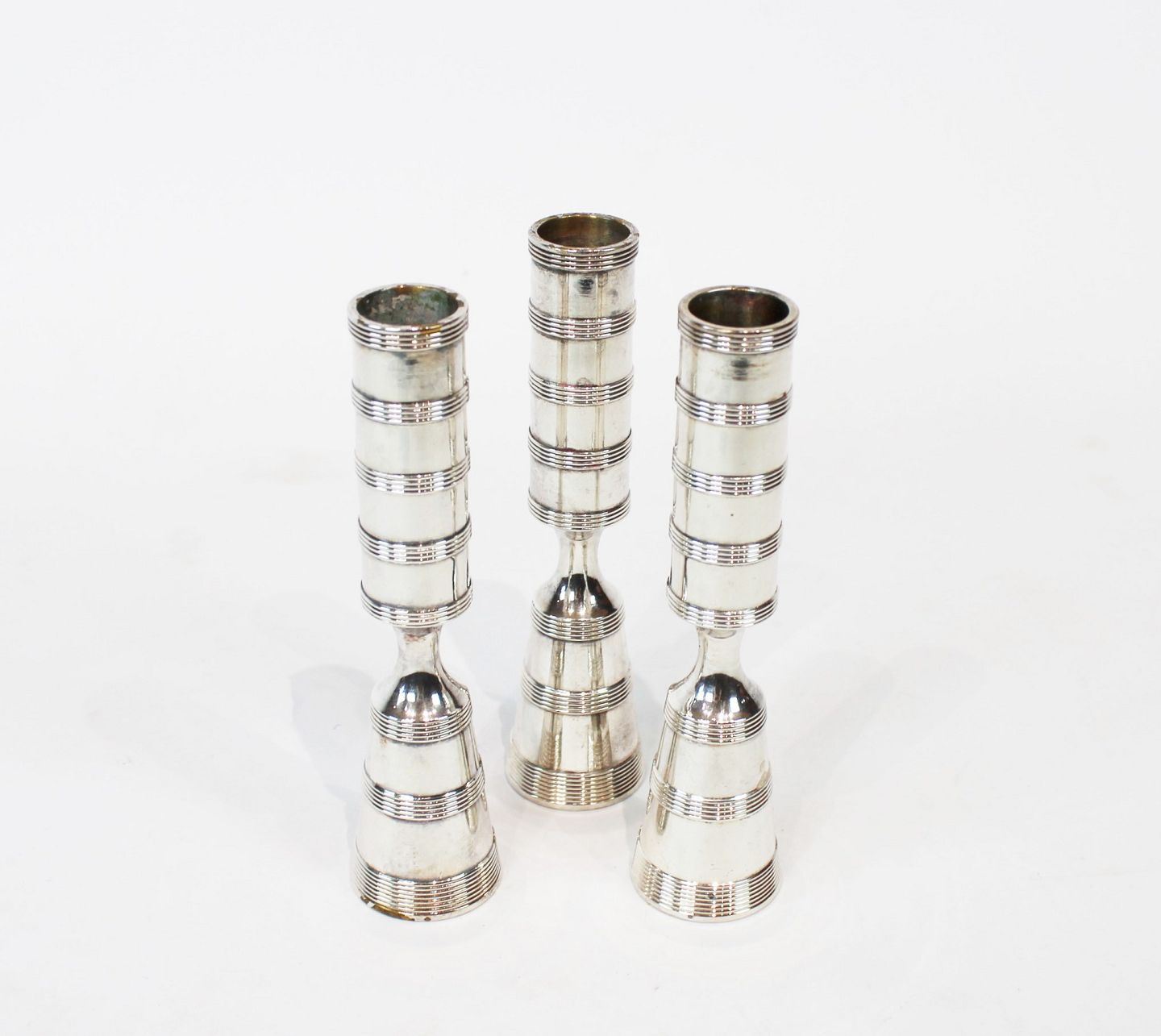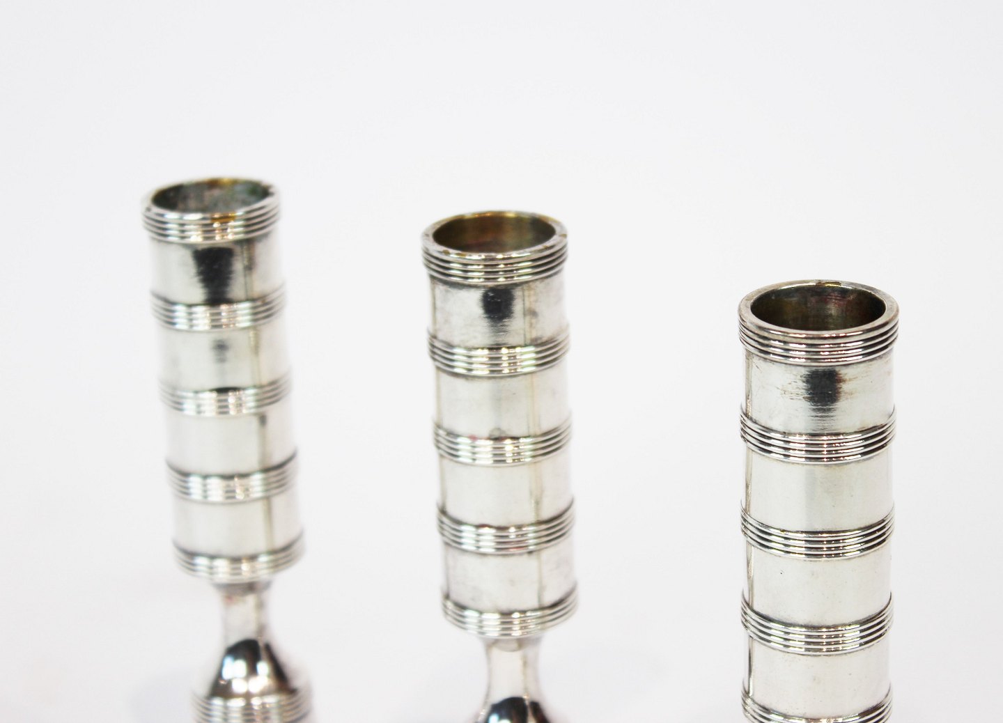 SolgtSæt af tre lysestager af sølvplet og af Quistgaard fra 1960erne.