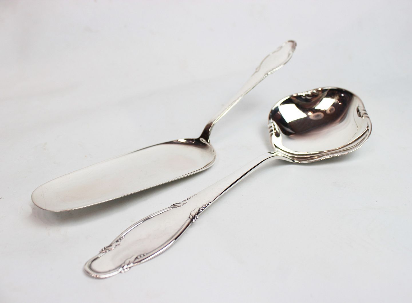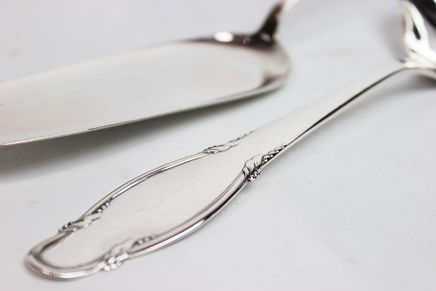 Cake server and serving spoon in Frijsenborg, hallmarked silver.