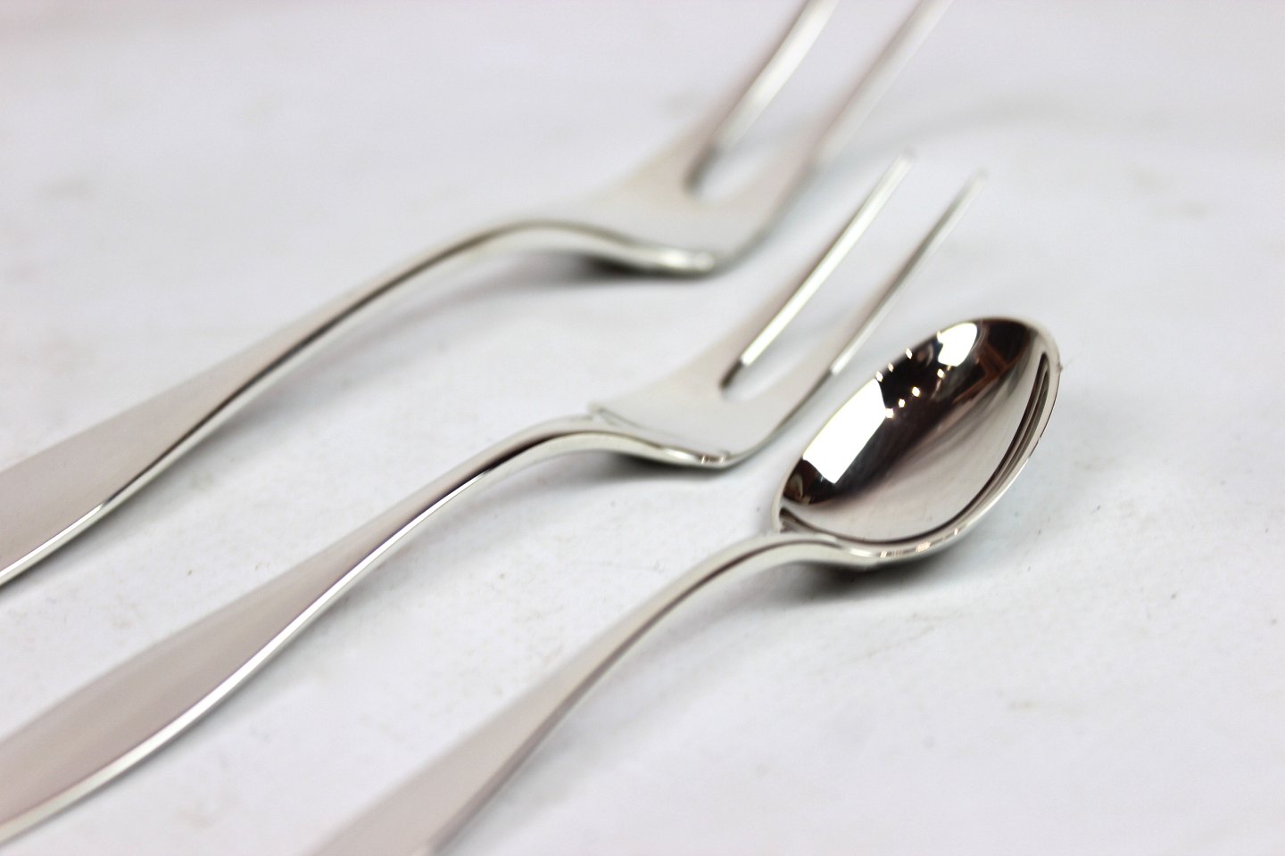 View the price in the text descriptionCarving fork, serving fork and teaspoon in Charlotte by Hans Hansen. Ask for number in stock. teaspoon in Charlotte(300 DKK) - serving fork(525 DKK) - Carving fork(950 DKK)