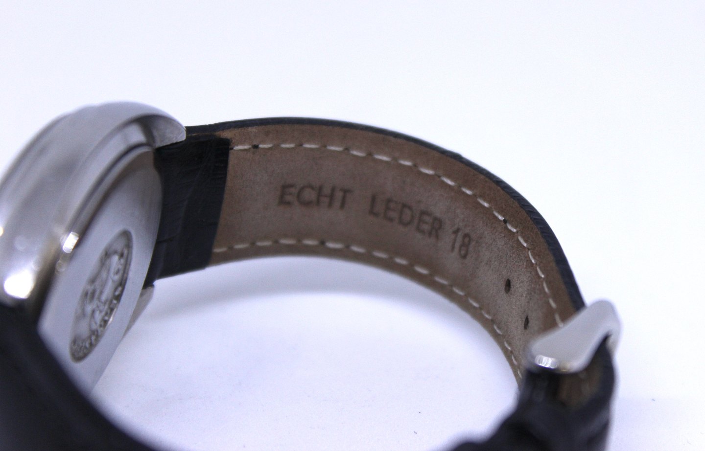 SoldOmega Quartz Seamaster wrist watch, swiss made and with date. The watch is with a black leather strap and in great condition.