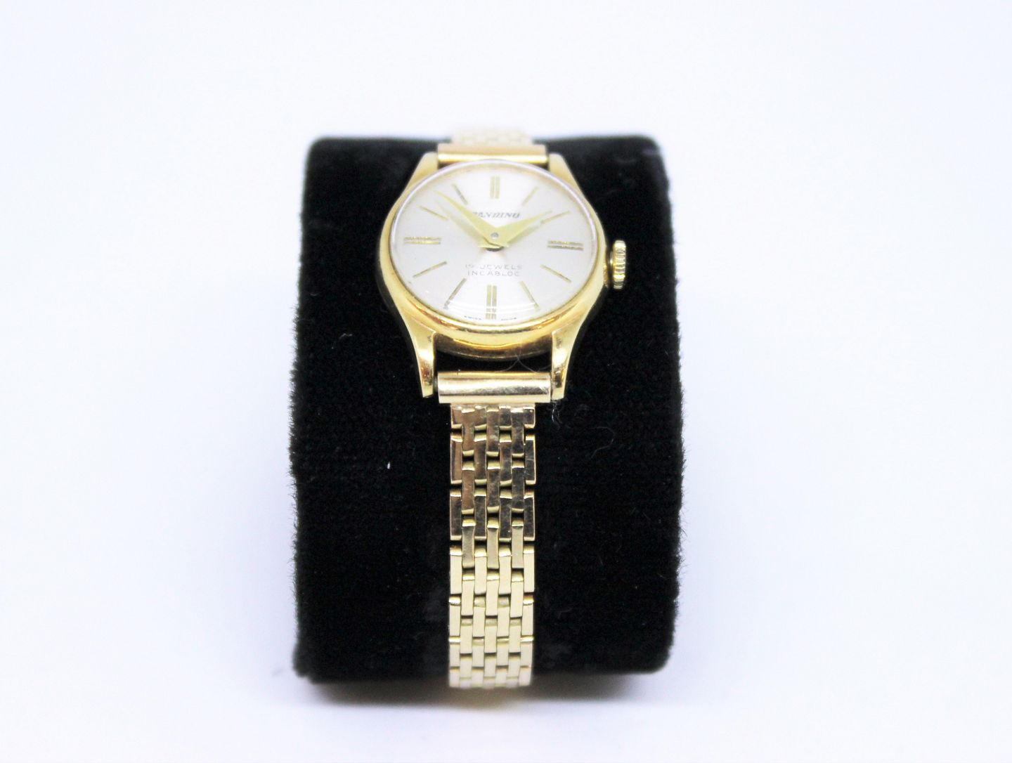 Candino wrist watch, case of 18 ct. gold and chain with 7 rows of 14 ct. gold. The watch is swiss made and chain is stamped SEJ.