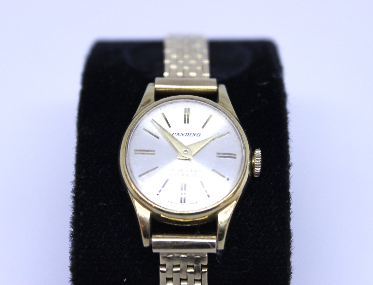 Candino wrist watch, case of 18 ct. gold and chain with 7 rows of 14 ct. gold.
