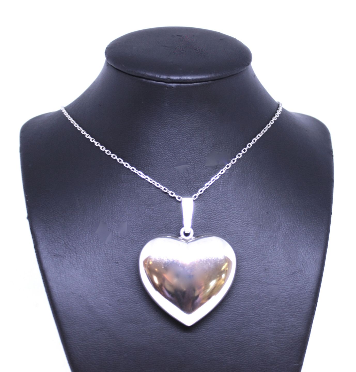 SoldNecklace of 835 silver and heart shaped pendant of 925 sterling silver stamped H.S.