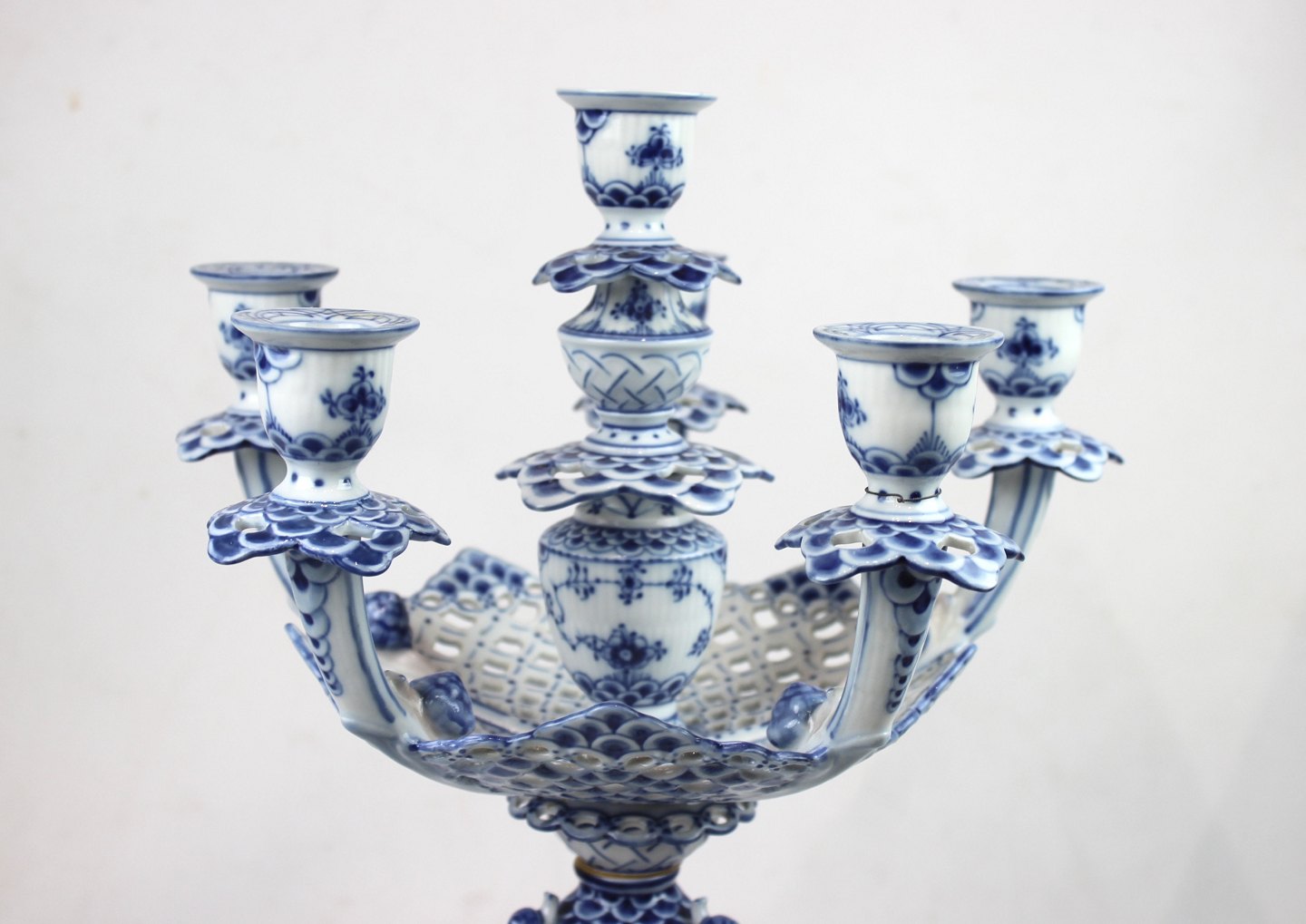Musselmalet Helblone, also known as "Full Lace," is known for its fine, hand-painted lace edges and detailed floral decorations. Each candelabra is carefully hand-painted by experienced artists, making each one unique.