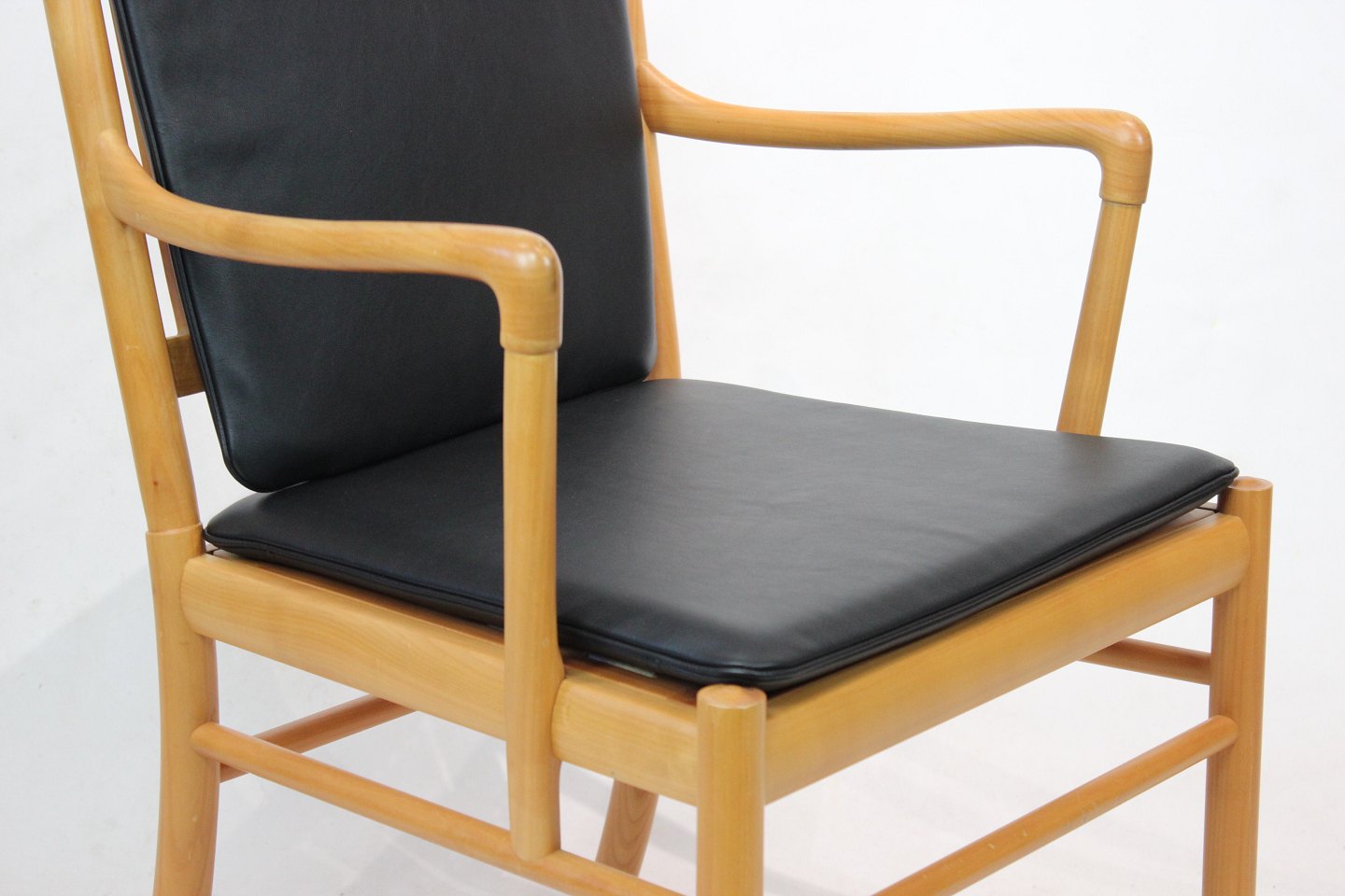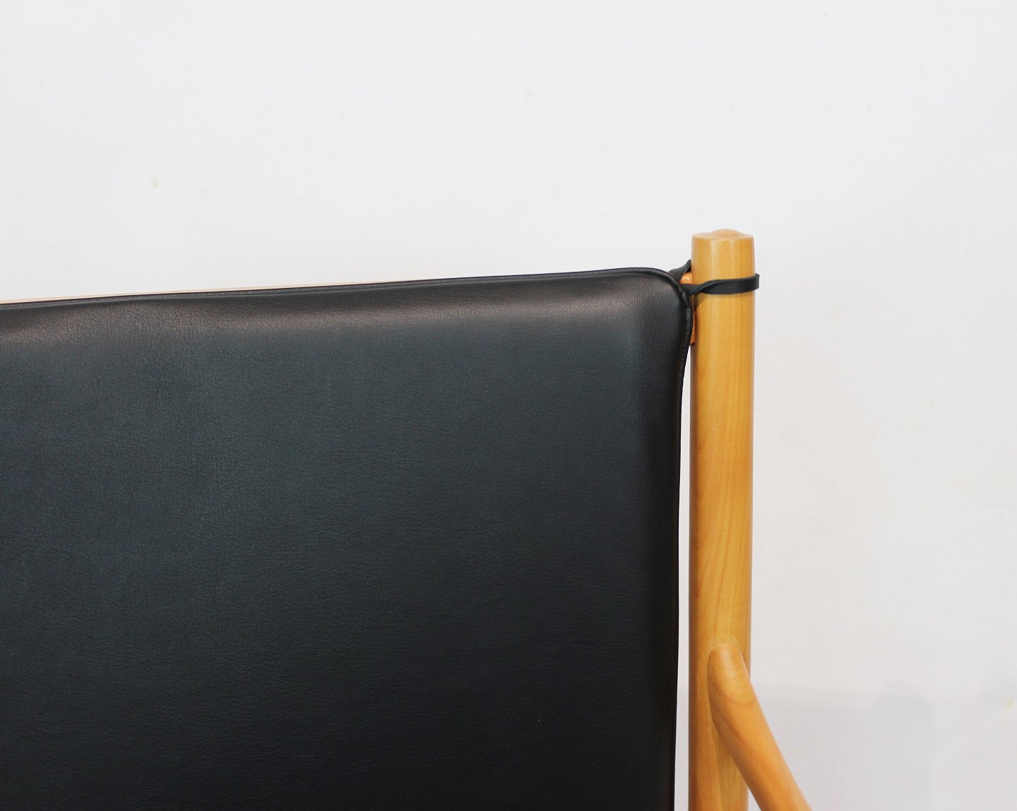 Ole Wanscher er kendt for sin evne til at kombinere klassisk elegance med funktionel enkelhed, og model PJ-301 er ingen undtagelse. Stolen har en tidløs æstetik med rene linjer og en behagelig siddekomfort, der gør den velegnet til både stuer og kontorer. Kirsebærtræets rige farve og fine åremønstre komplementerer det sorte læder perfekt, hvilket resulterer i en harmonisk og stilfuld stol.