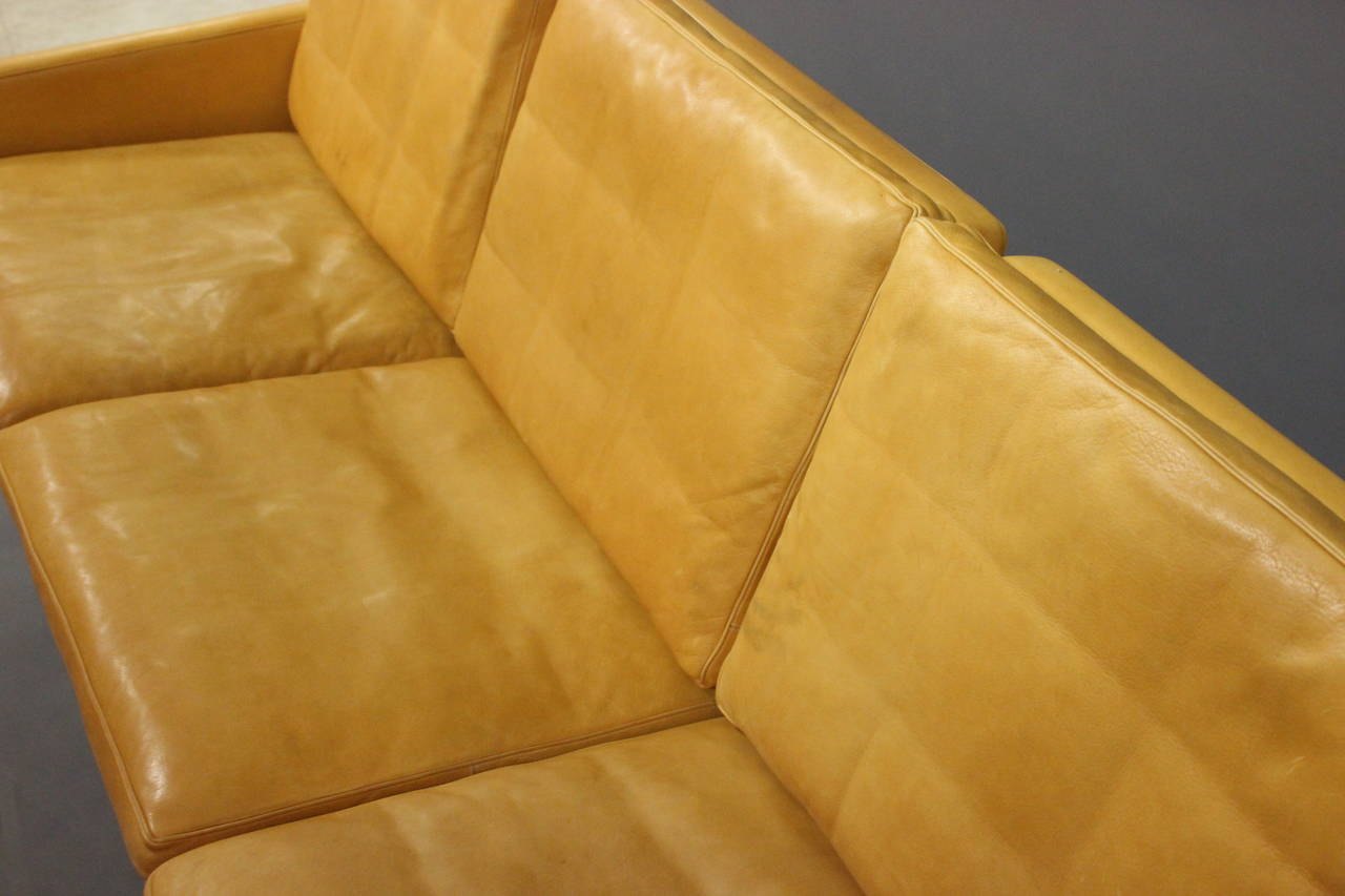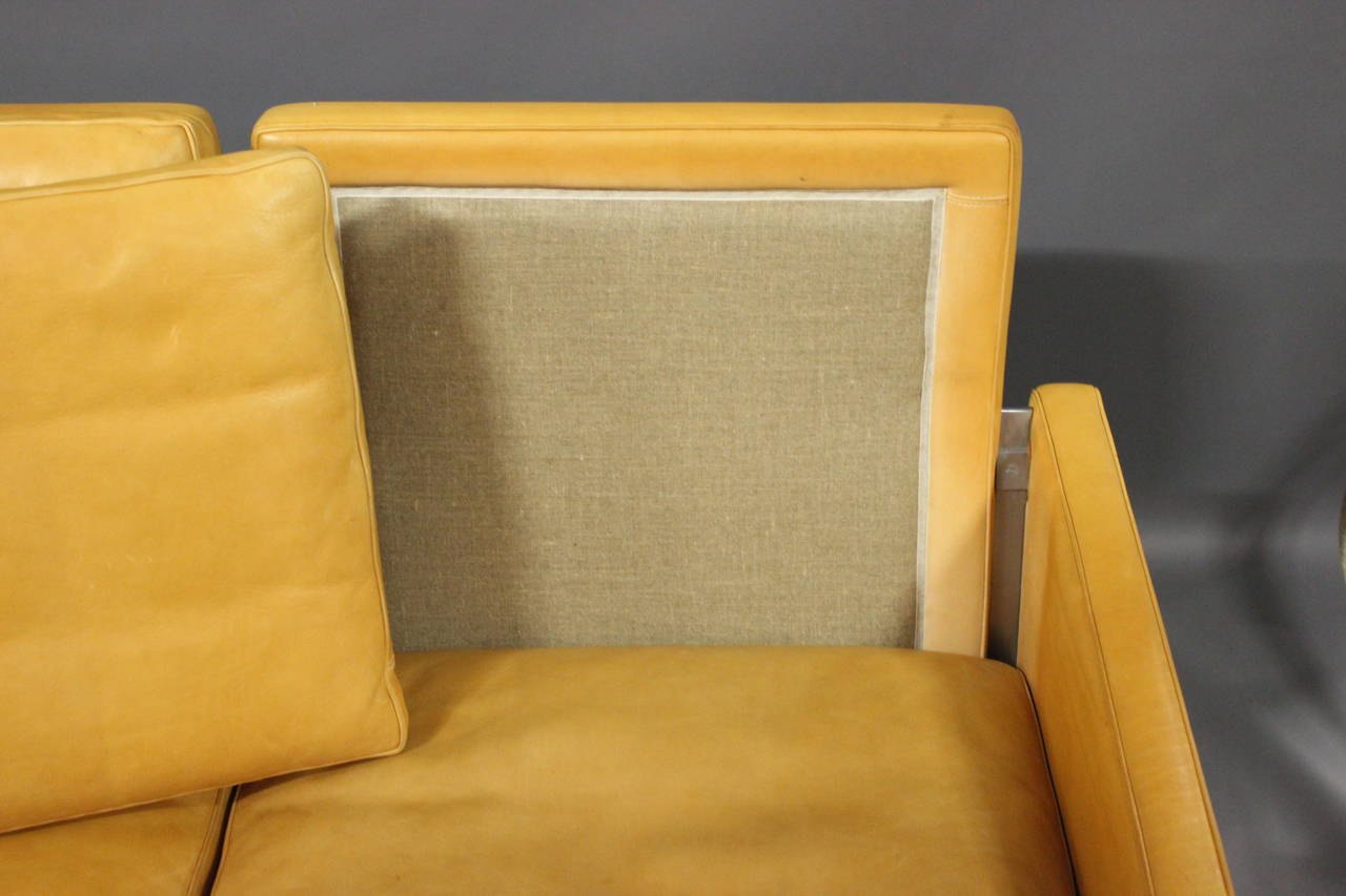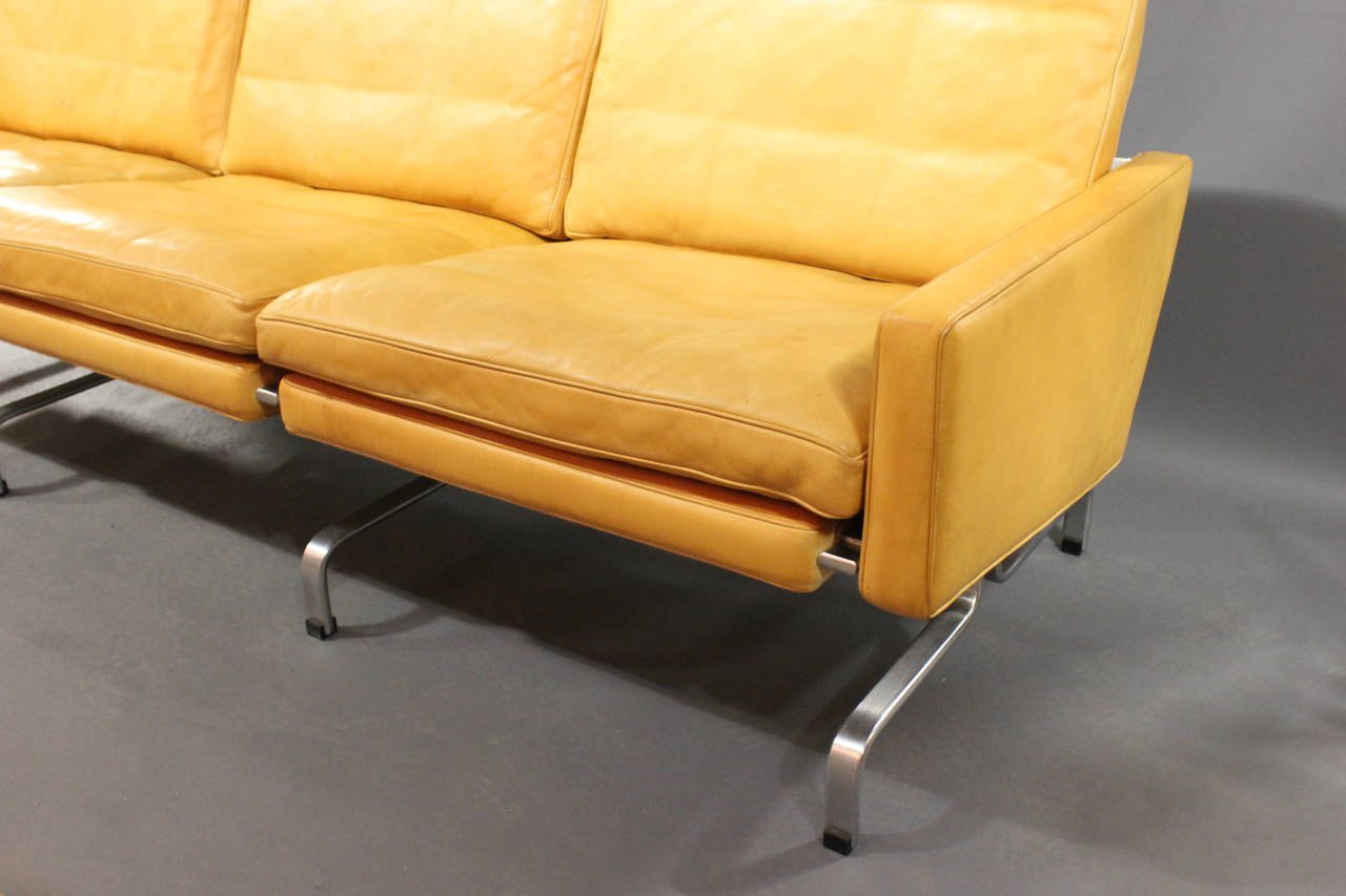 With legs made of aluminum and a seat cushion upholstered in the finest yellow leather of the absolute best quality, the PK31/3 sofa unites innovation and luxury in a sublime way. The combination of materials creates a contrasting and inviting aesthetic that adds a touch of elegance to any room.