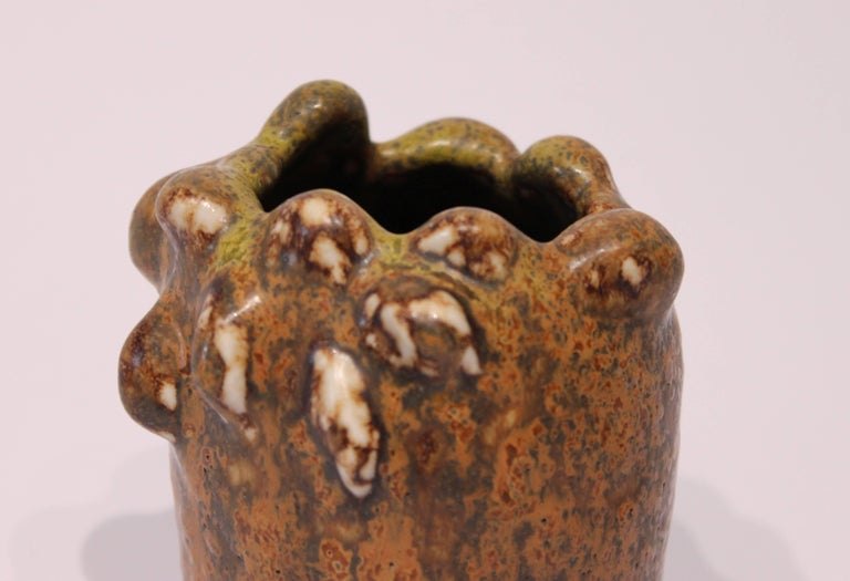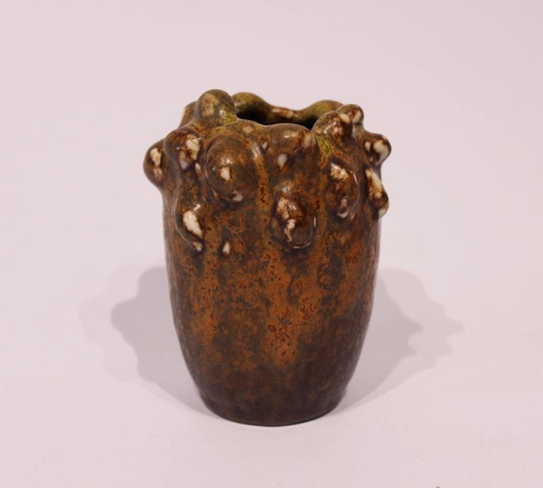 SoldCeramic vase in dark and light brown colors designed by Axel Salto for Royal Copenhagen from the 1950s. The vase is in perfect condition and with the decorations number 21439.
