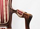 The chair has a beautifully striped fabric cover that adds a touch of sophistication and luxury to its design. The combination of the rich wood finish and the striped fabric creates a visually striking contrast that further enhances the chairs' appeal.