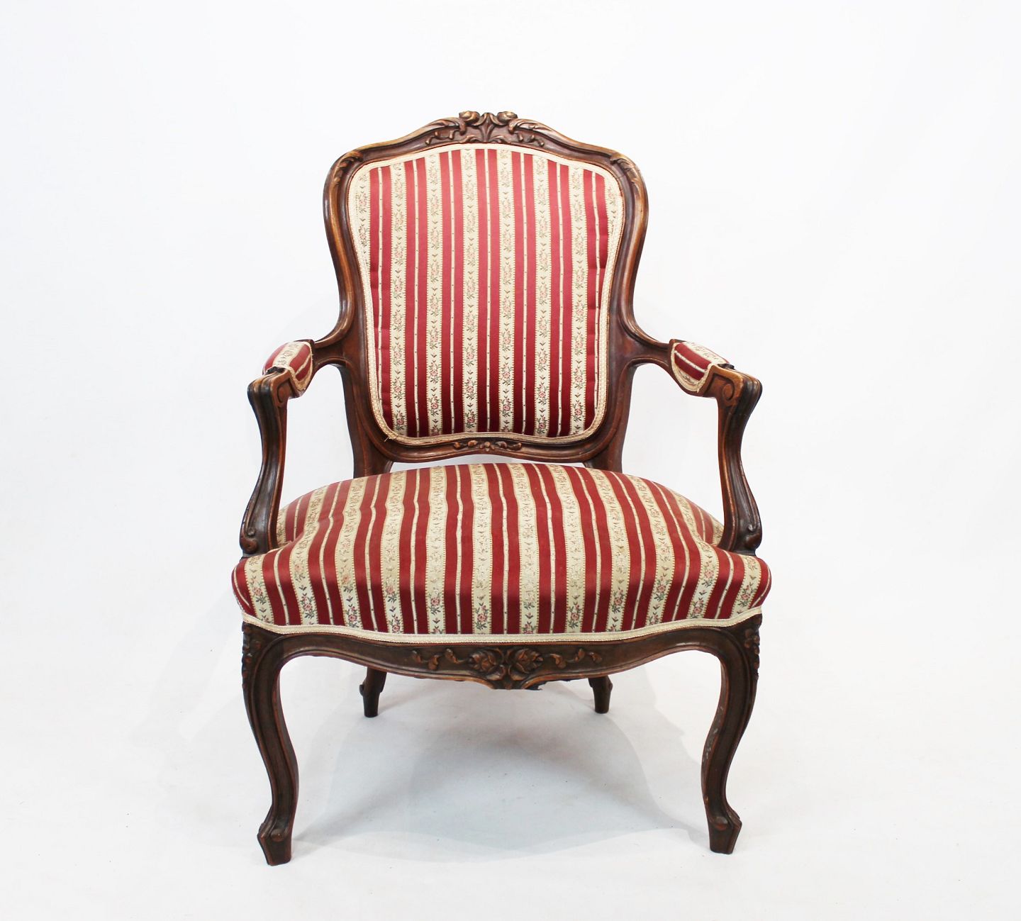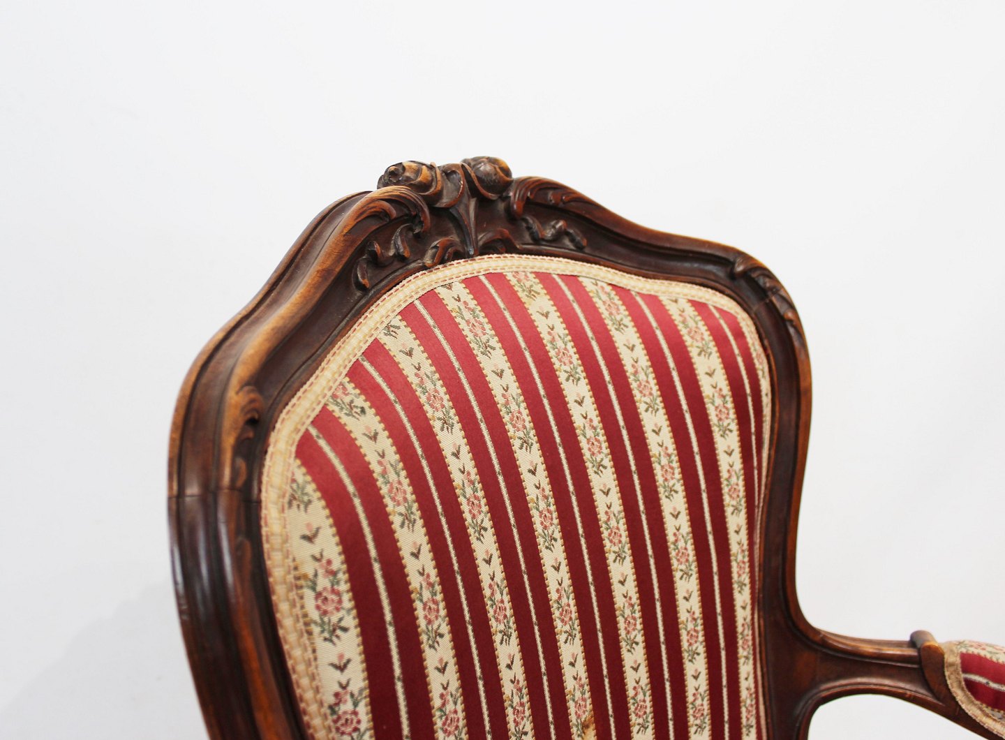 New Rococo Polished Wood Carved Armchair - Striped Fabric - 1890