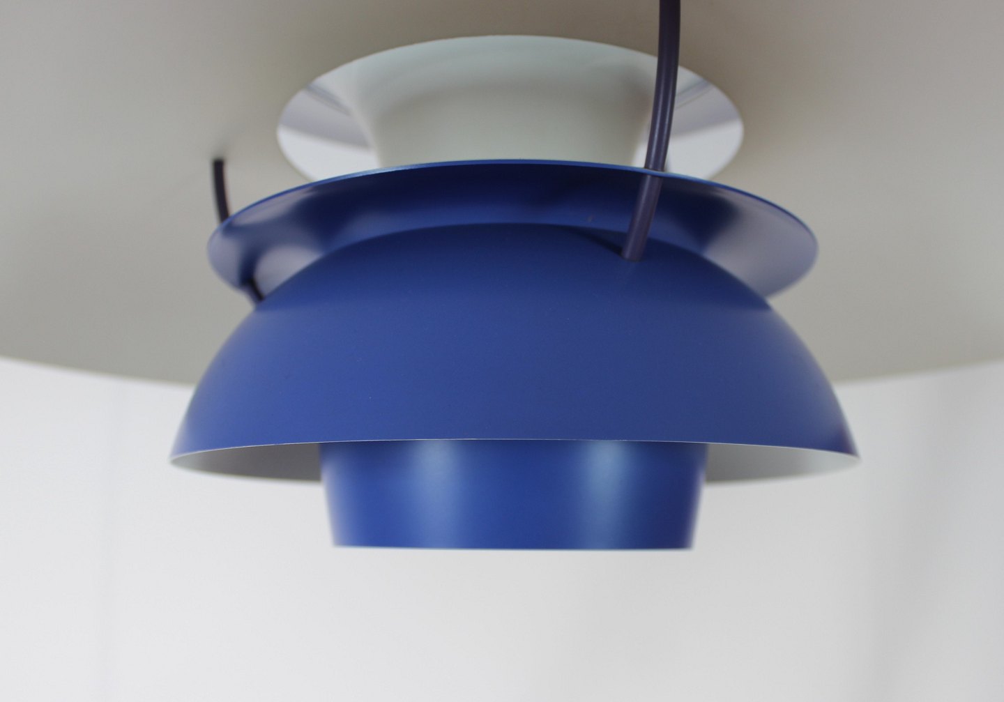 SoldPH5 pendant designed by Poul Henningsen in 1958 and manufactured by Louis Poulsen. The pendant has blue lacquered metal Shades.