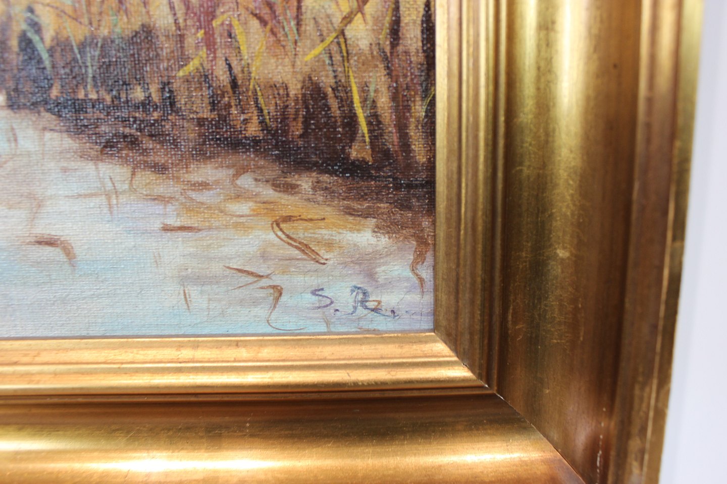 SoldPainting with nature motif and gilded frame signed S.R. The painting is in good vintage condition.