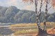 Painting with forest motif and gilded frame signed Finn Wennervald.
