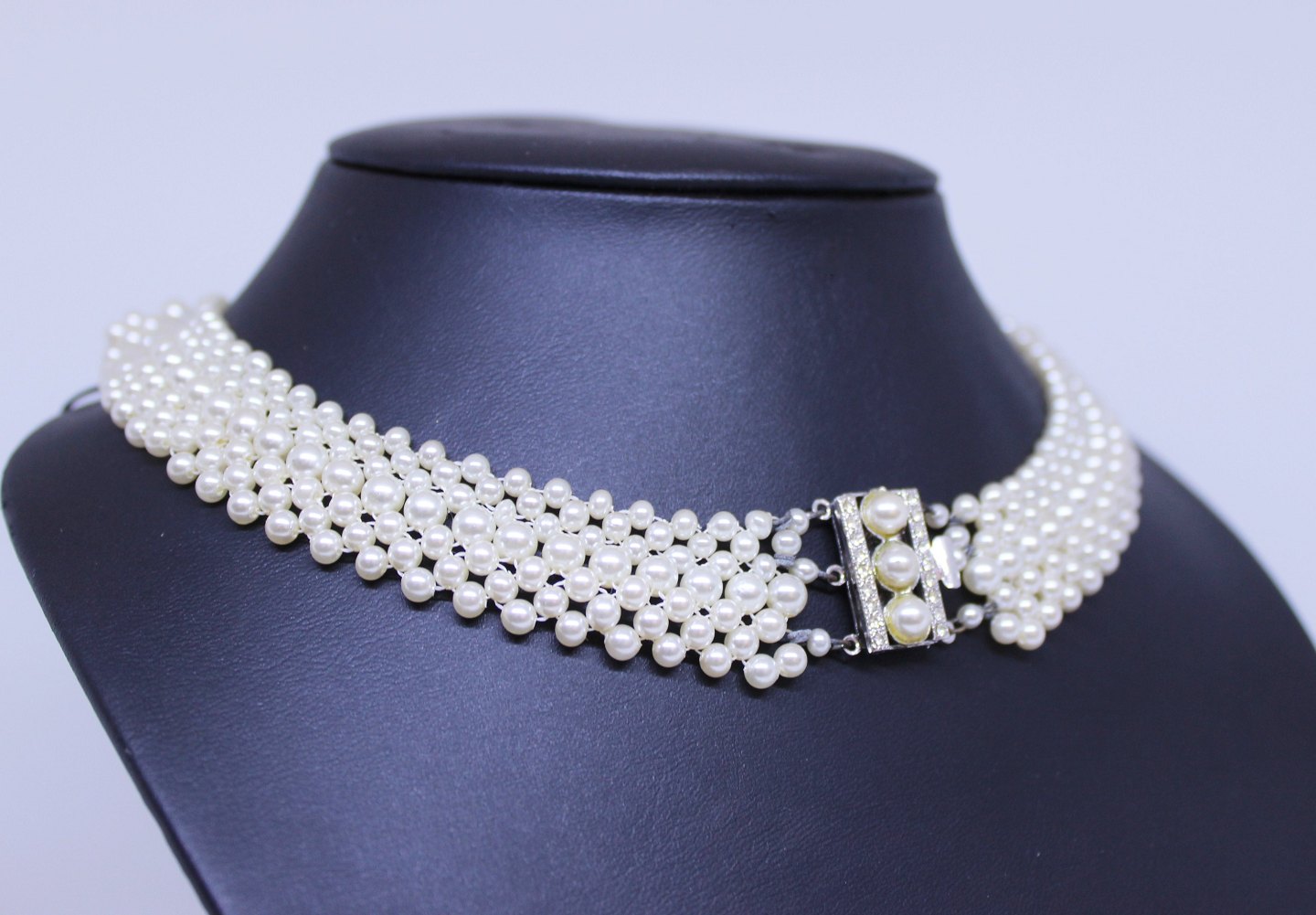 Necklace of multiple rows of pearls. The jewlery is in great condition.