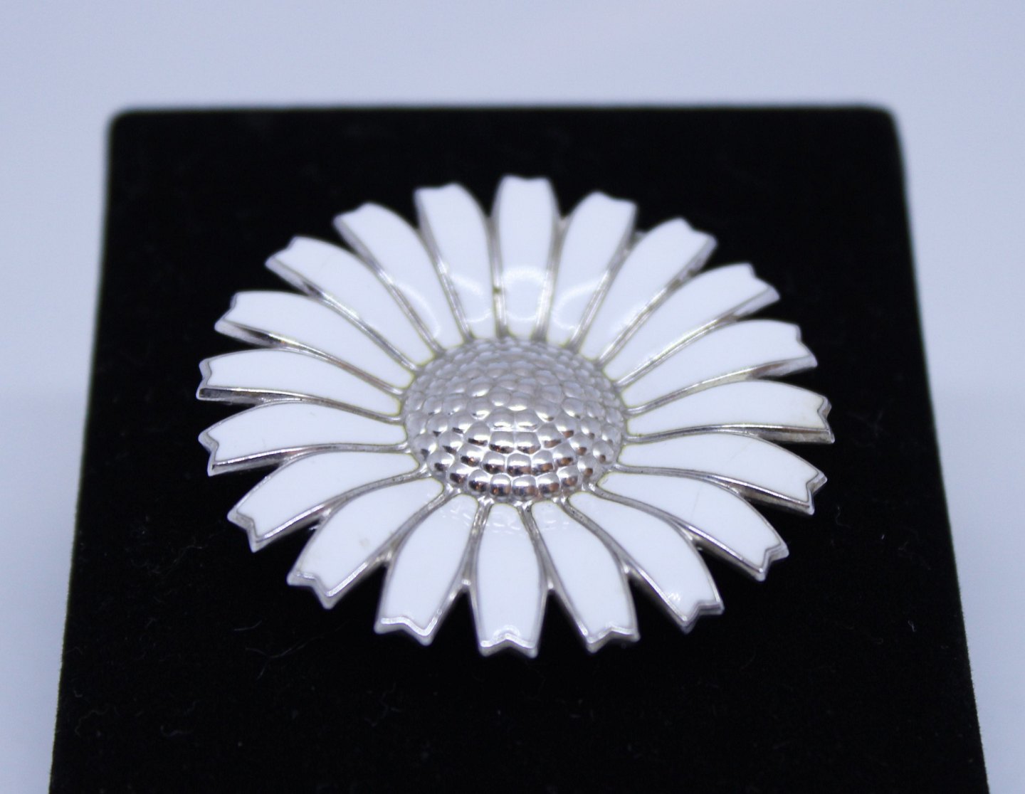 Daisy brooch of 925 sterling silver and white enamel by Georg Jensen.