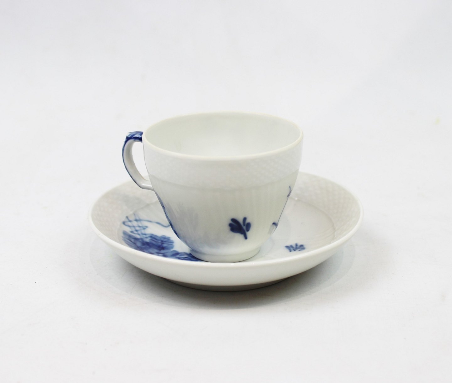 Kaffekop med underkop, nr.: 1549 i Blå Blomst Svejfet af Royal Copenhagen. Spørg for antal på lager.