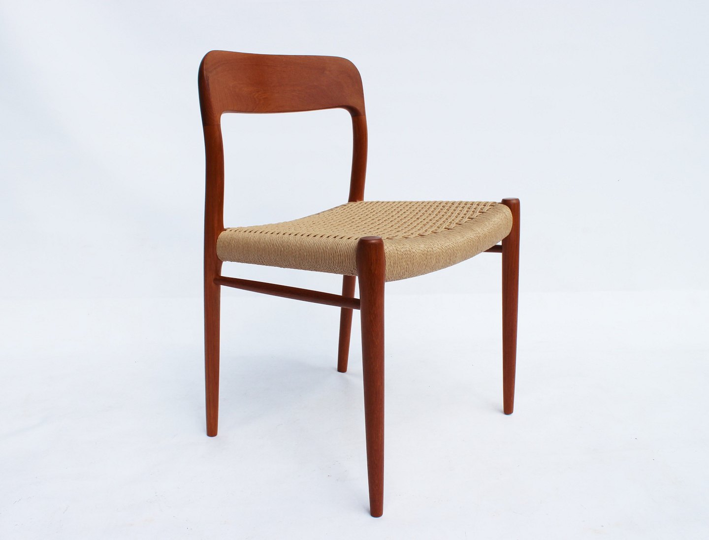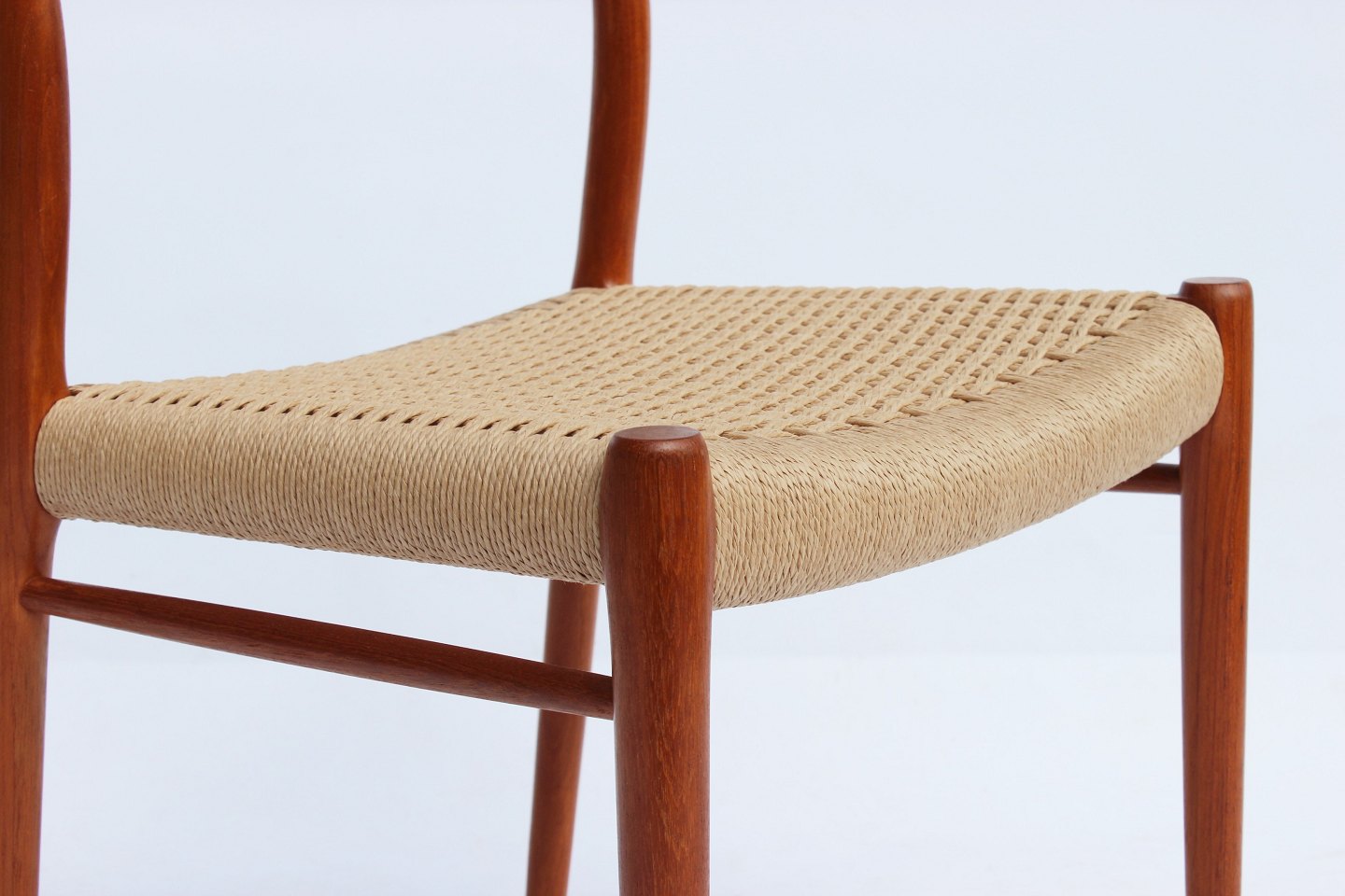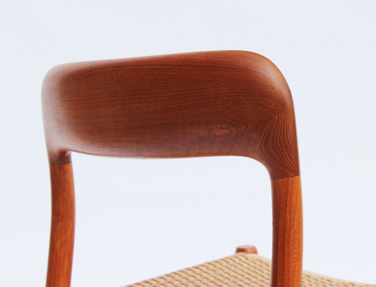 SoldA set of four dining chairs, model 75, in teak and papercord designed by N.O. Møller from the 1960s. The chairs are in great vintage condition.