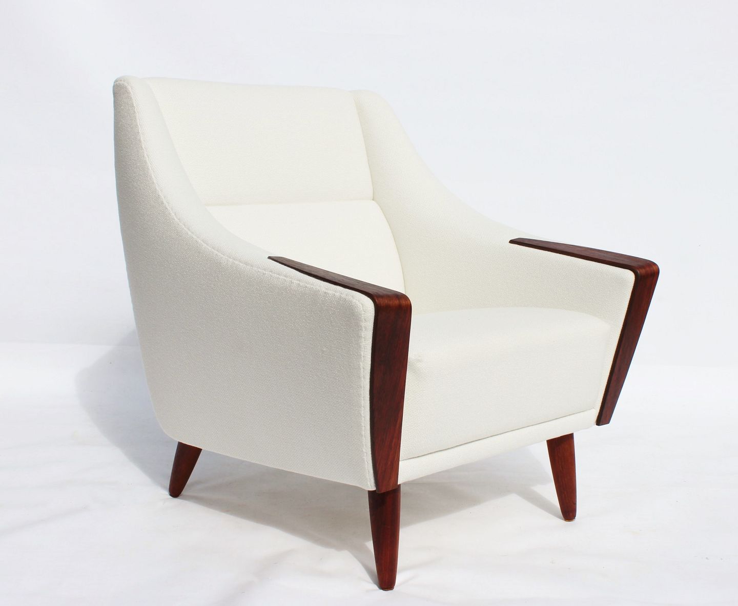 Armchair With Low Back - White Fabric - Rosewood - Danish Design - 1960