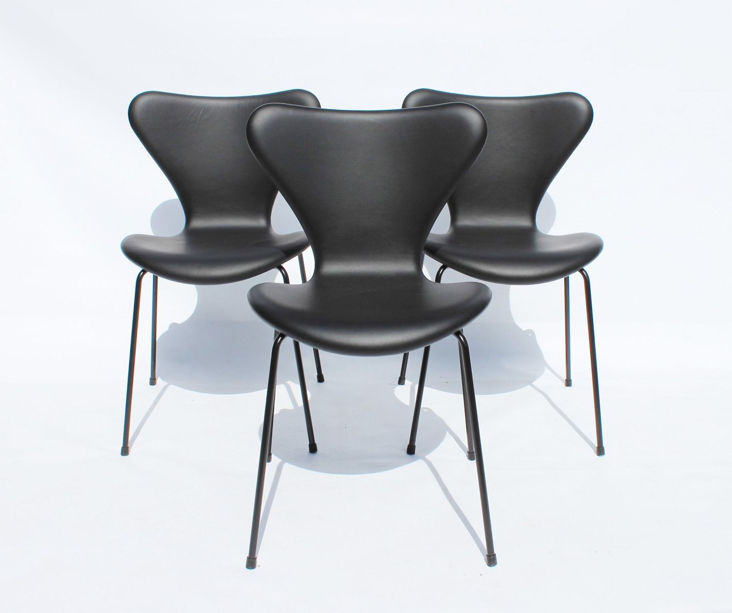 Set of three Seven chairs - Model 3107 - Black Leather - Black Frame - Arne Jacobsen - Fritz Hansen
