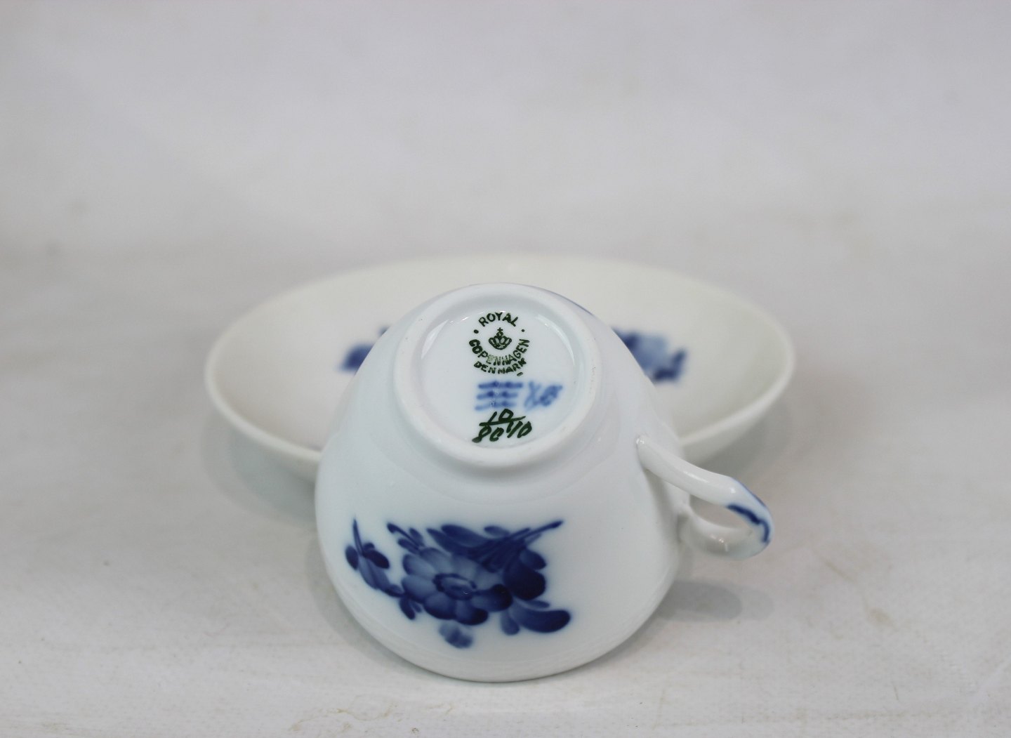 Kaffekop med underkop, nr.: 8040, i Blå Blomst Flettet af Royal Copenhagen.
