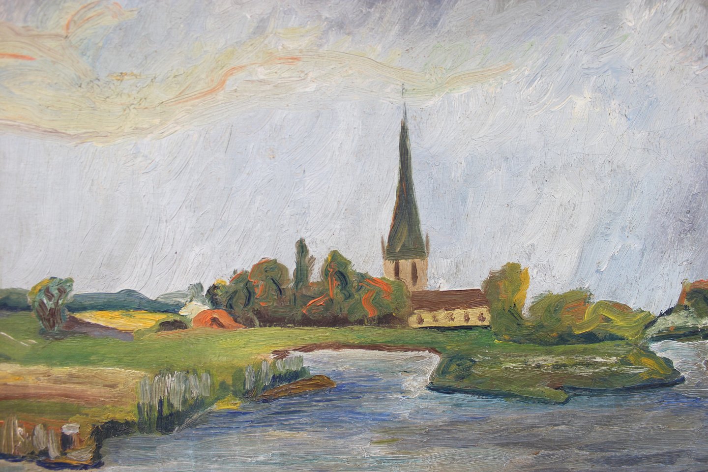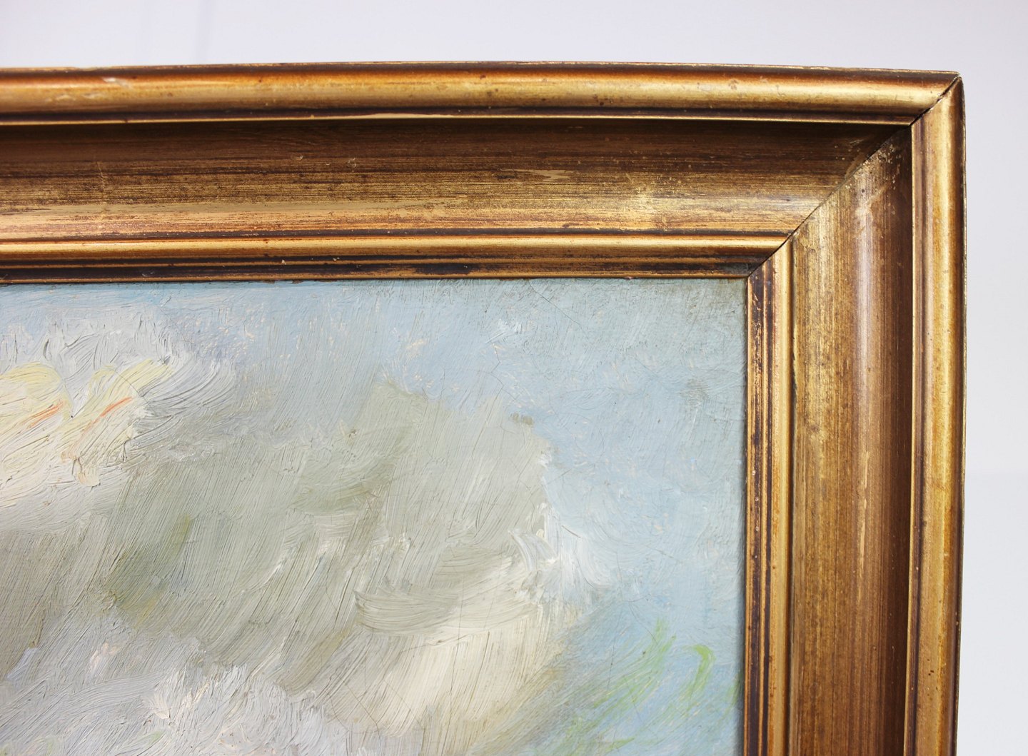 Oliemaleri med motiv af dansk landskab med forgyldt ramme signeret M. T. Blichfeldt.