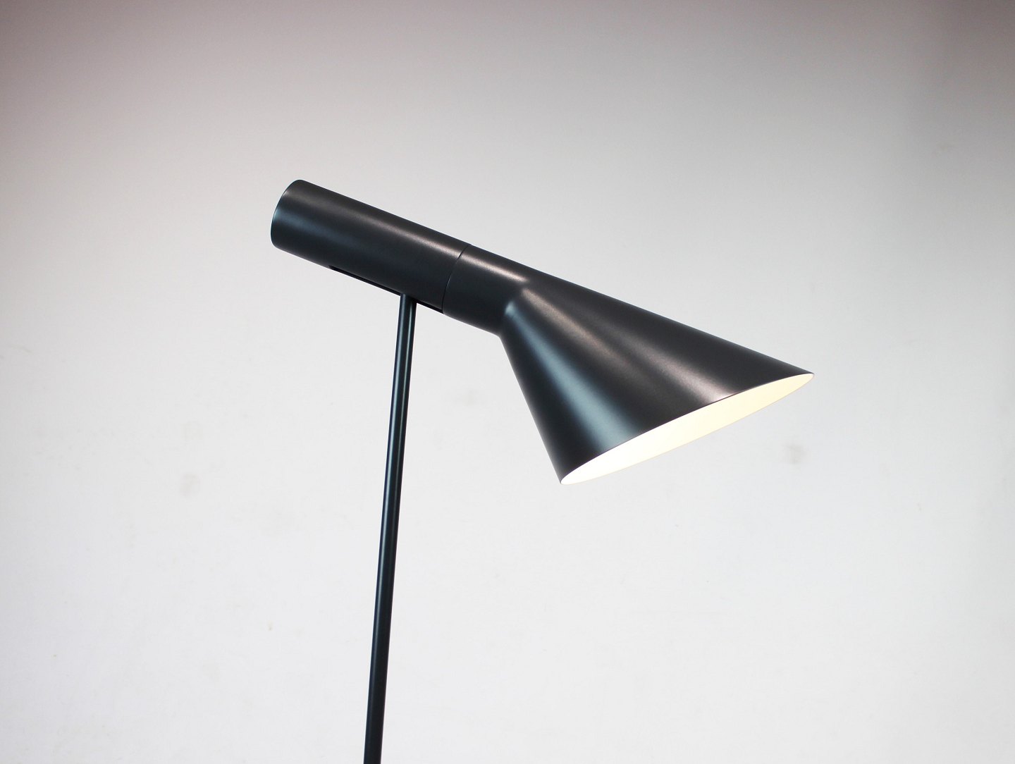 Dark grey floor lamp desgined by Arne Jacobsen in 1957 and manufactured by Louis Poulsen. The lamp is a show model and is therefore in great used condition.