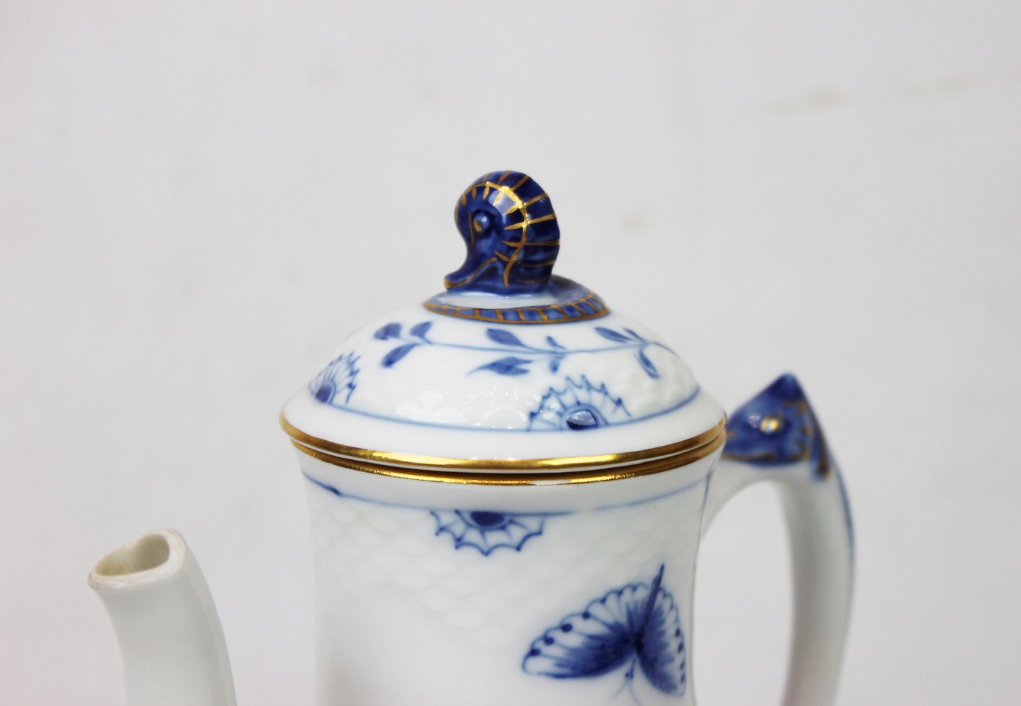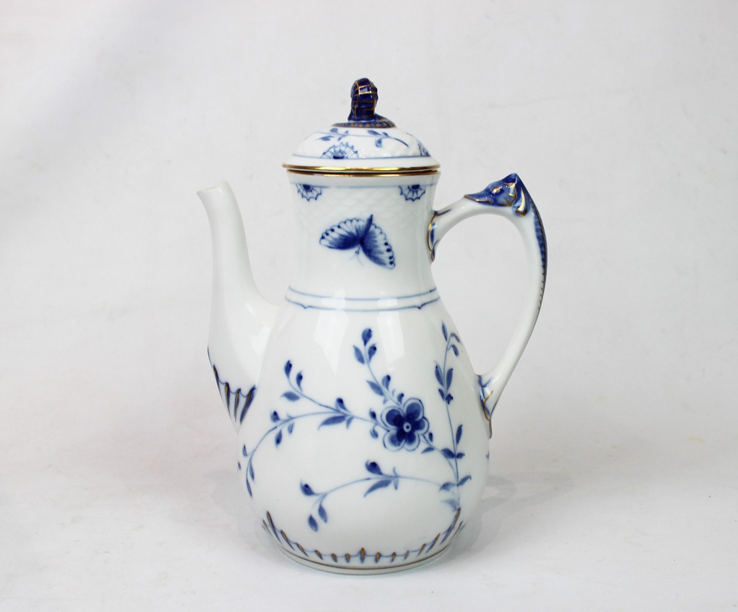 Coffee jug in Kipling Butterfly with gilded edge by Bing and Grøndahl.