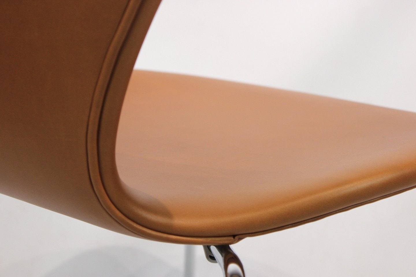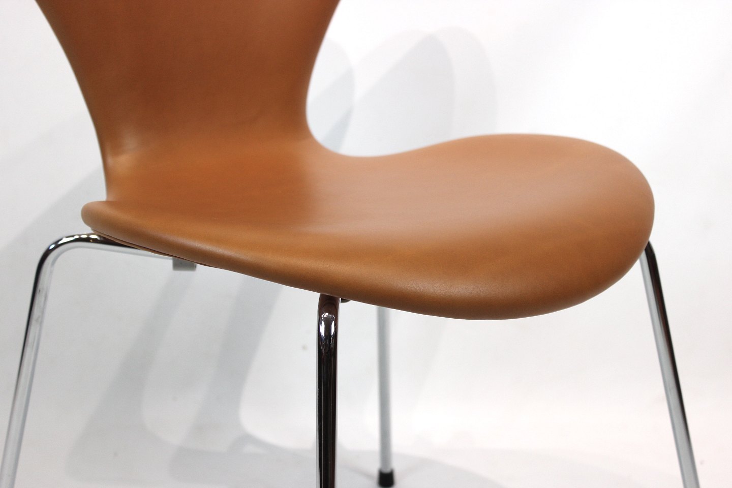 Dette sæt på fire Syver stole, også kendt som model 3107, er et fremragende eksempel på tidløst dansk design, skabt af den legendariske designer Arne Jacobsen og fremstillet af Fritz Hansen.