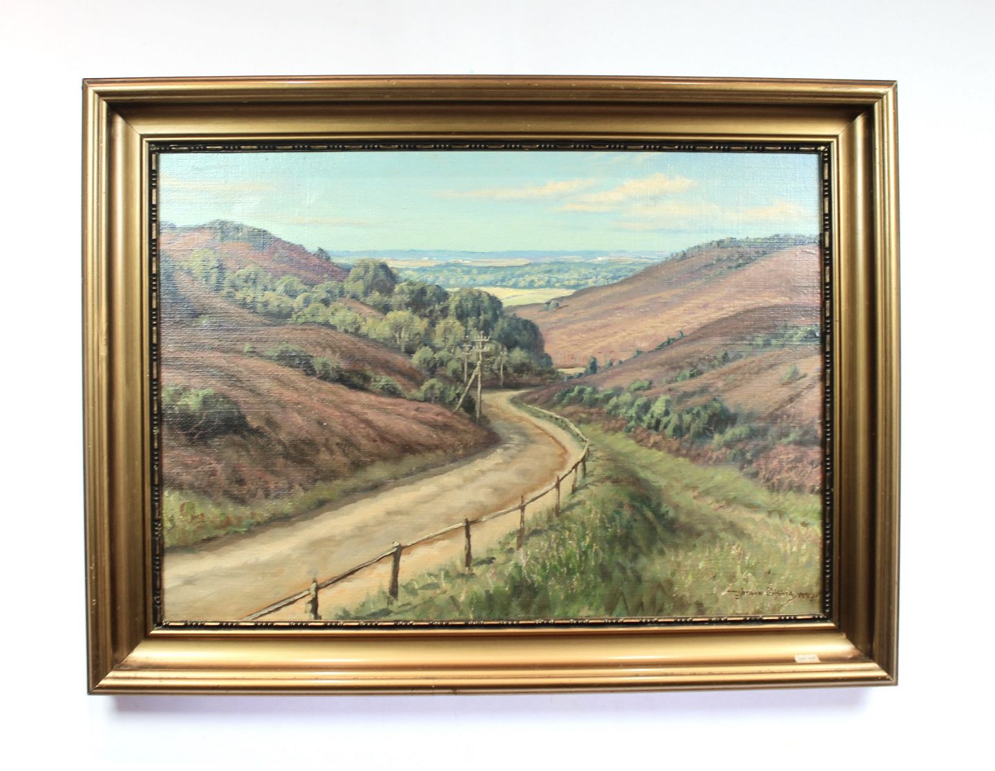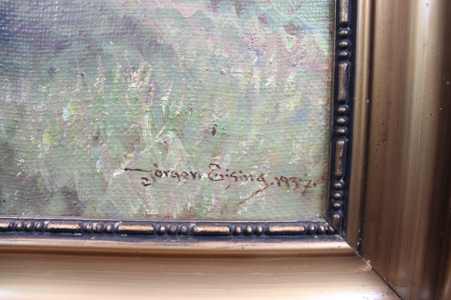 Oil painting with nature motif and gilded frame signed Jørgen Eising 1937.