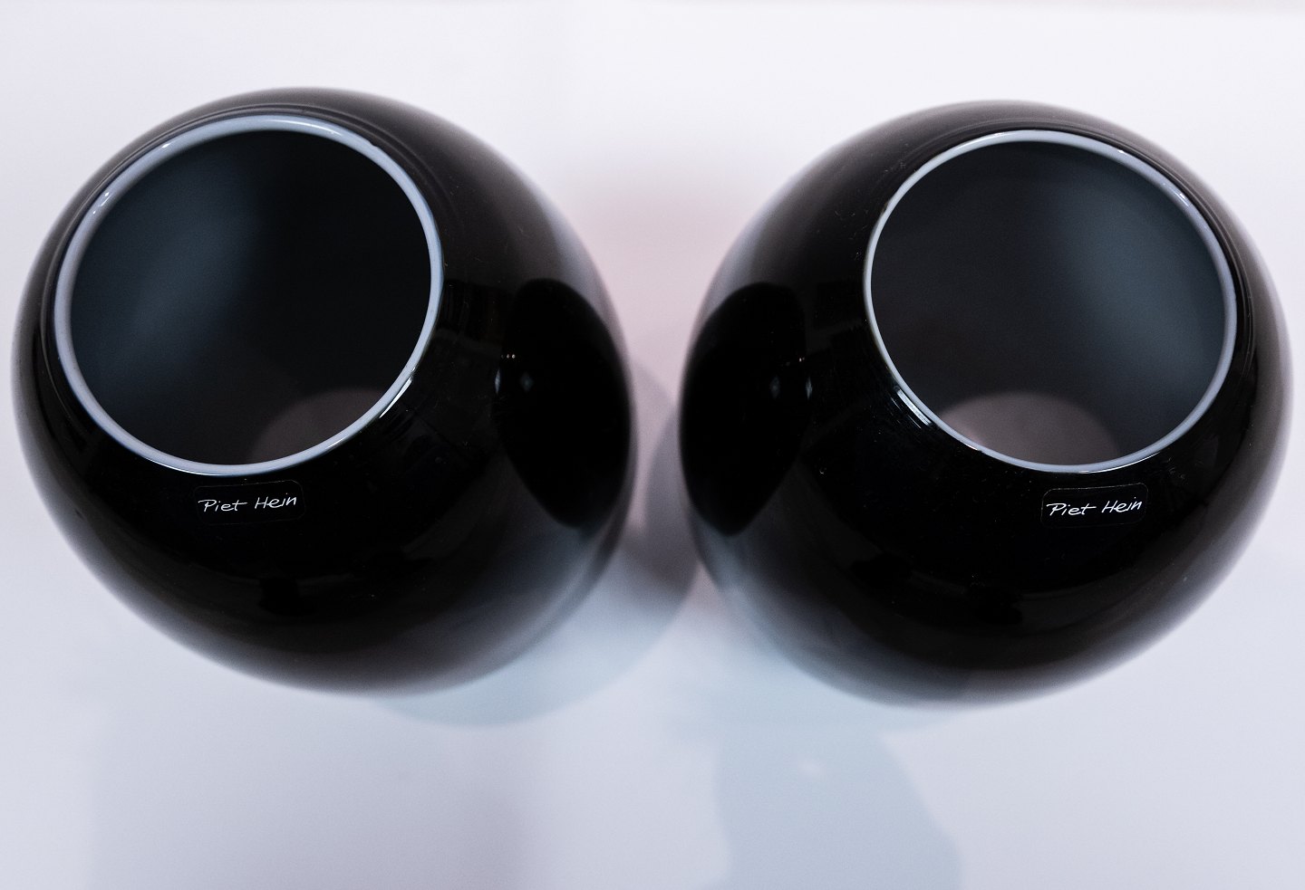 SolgtEt par Super vaser i sort opal glas af Piet Hein. Vaserne er i flot brugt stand.