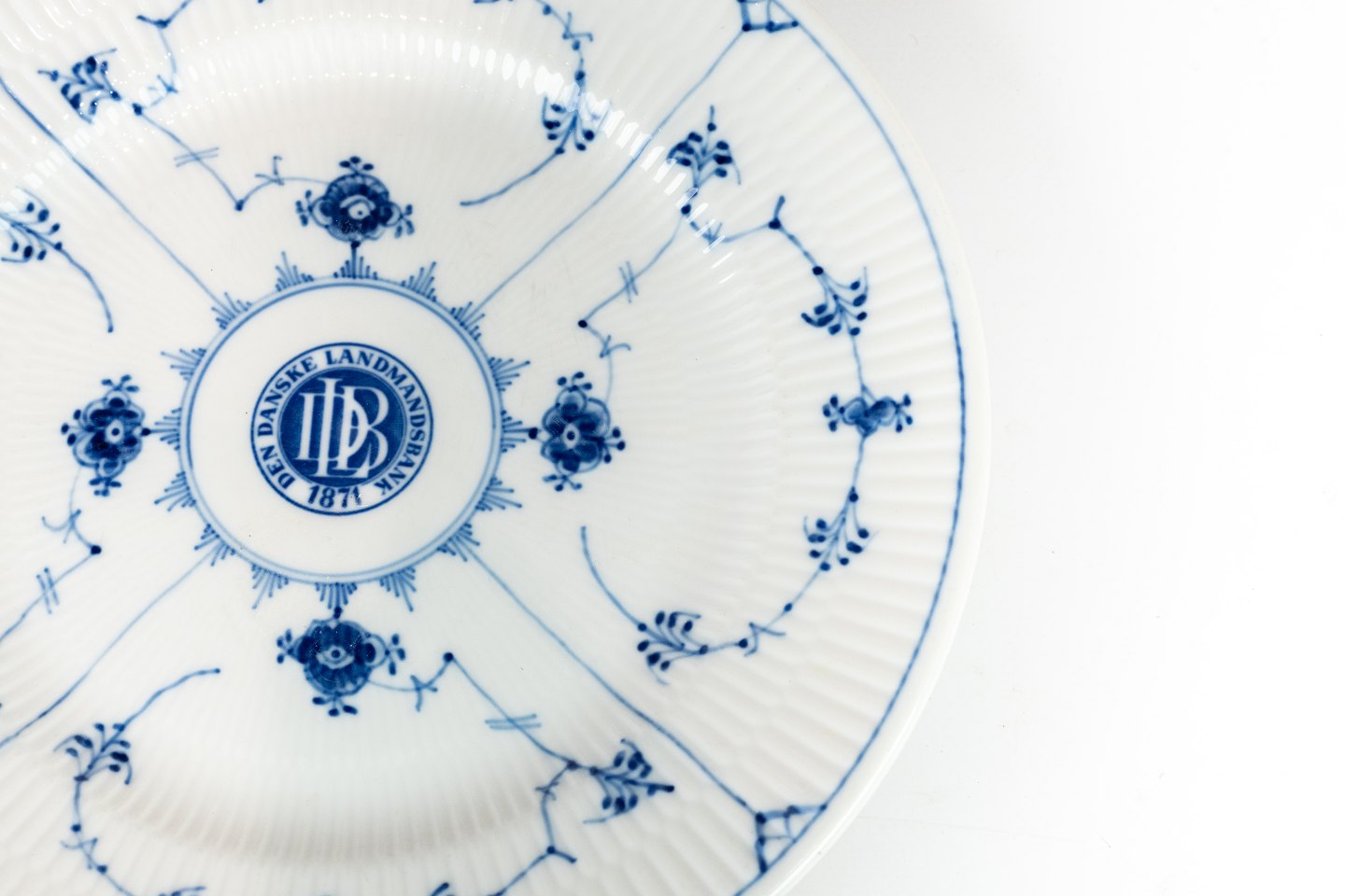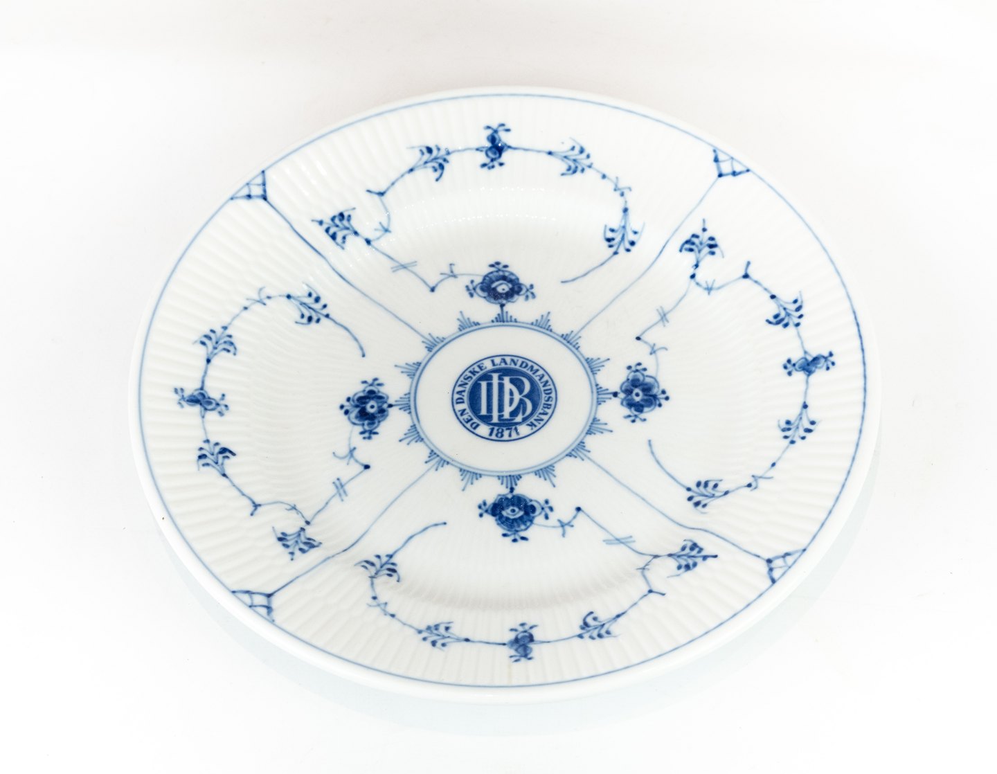 SoldBlue fluted dinner plate, no.: 2241, for the Danish Farmer's bank, by Royal Copenhagen.