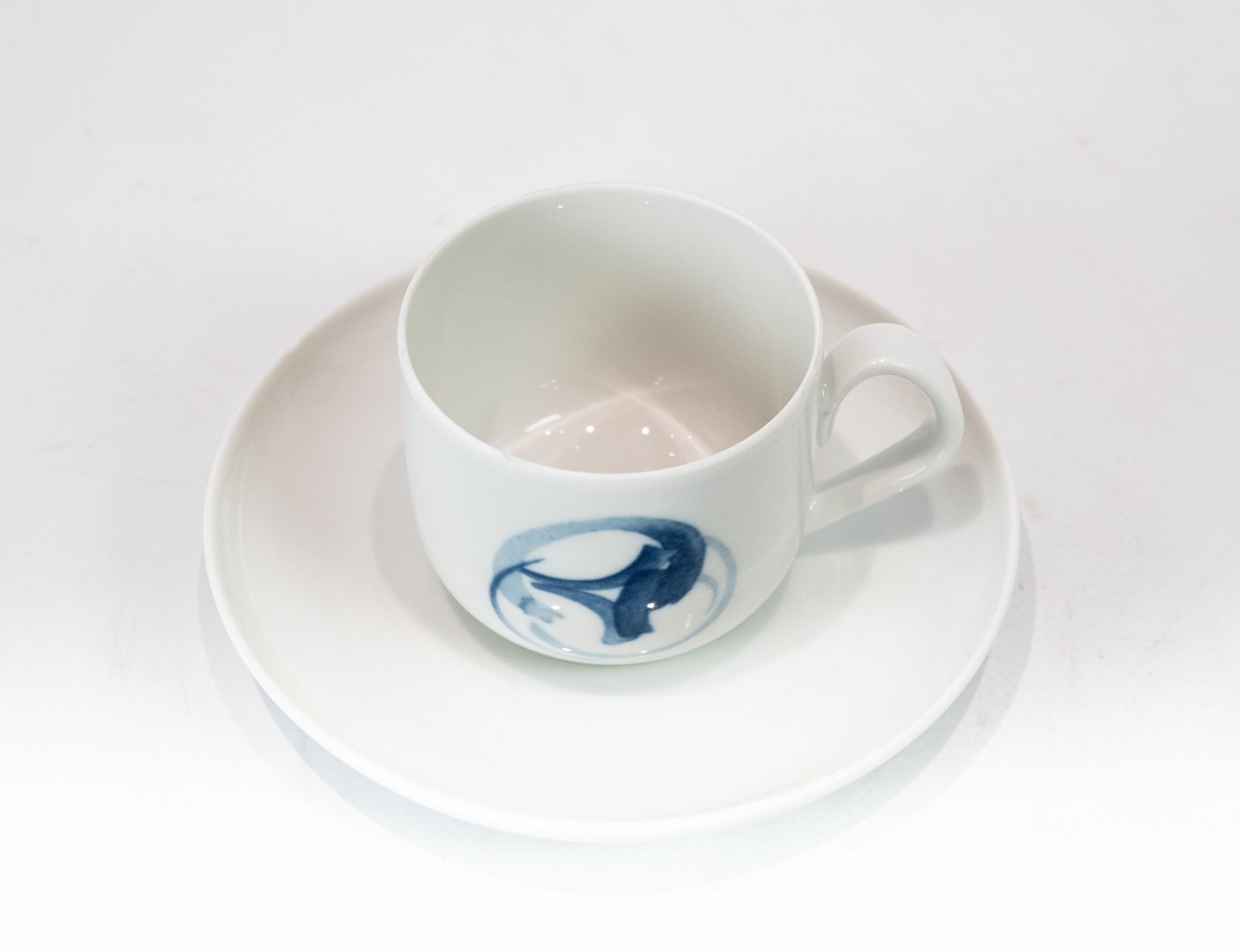 Kaffekop med underkop i Blå Koppel, nr.: 305 af Bing og Grøndahl.