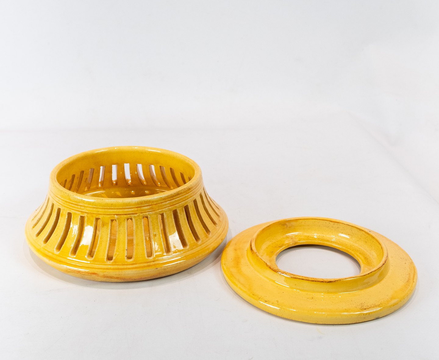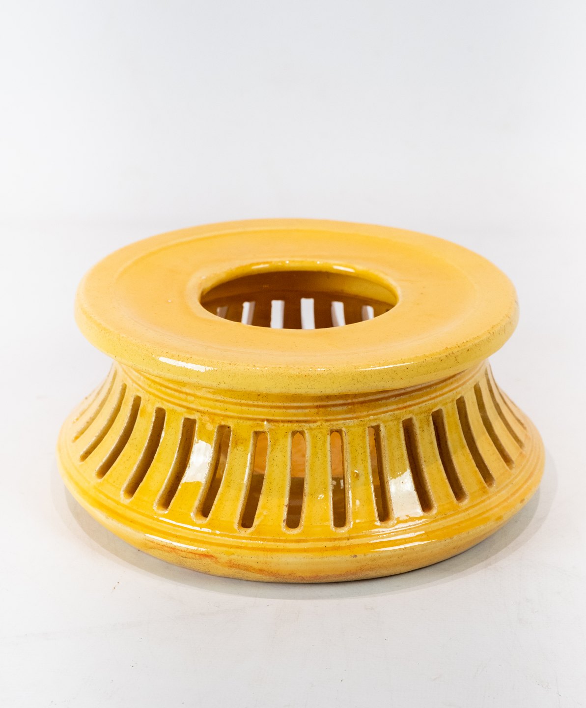 Fyrfad af keramik med gul glasur af Herman A. Kähler. I flot brugt stand.
