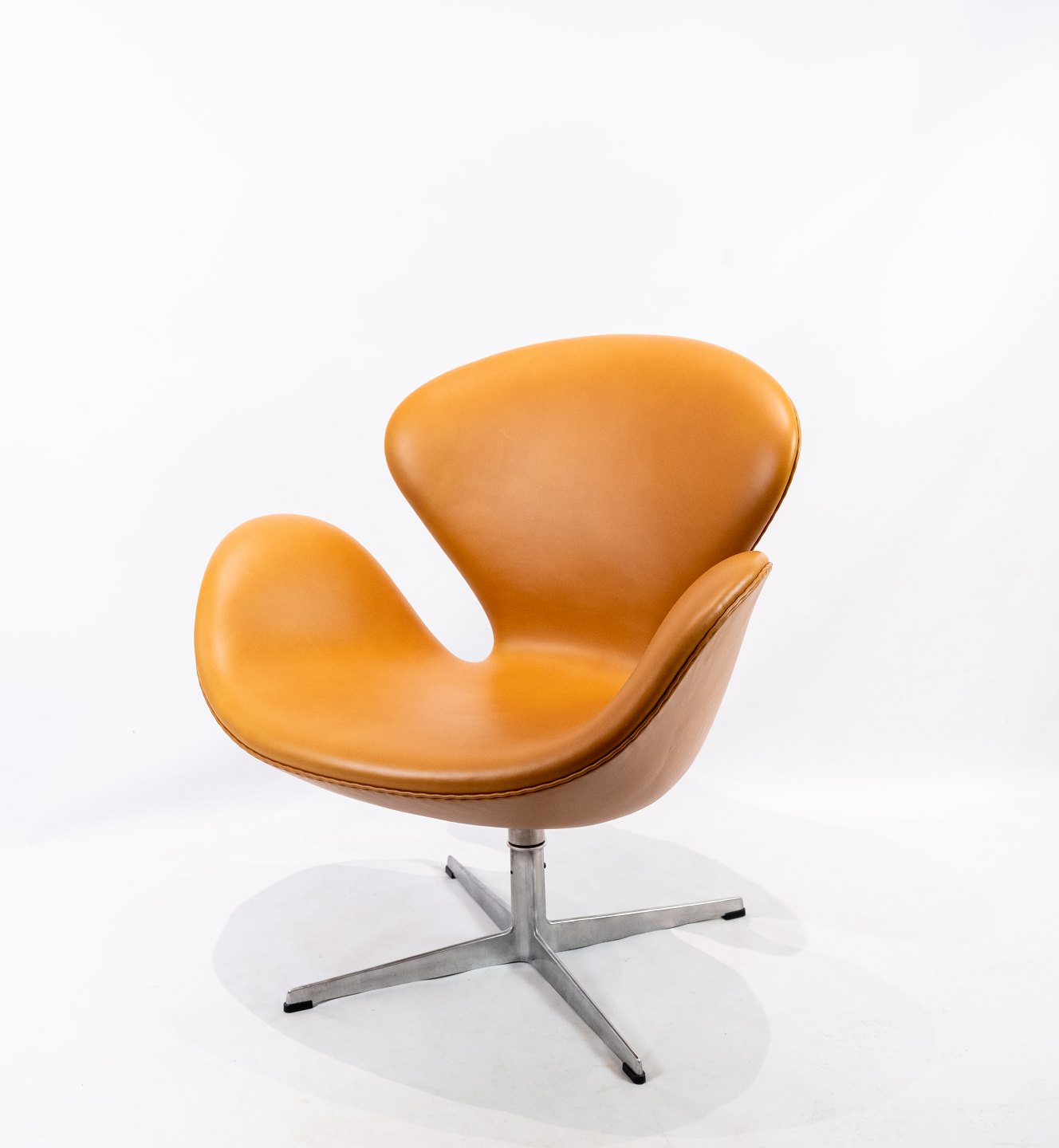 The swan is rotatable and stands on an aluminum base with a special tall column, adding a modern and stylish dimension to the design. The chair's swivel function and ergonomic shape make it ideal for both work and relaxation areas, where comfort and style are essential.