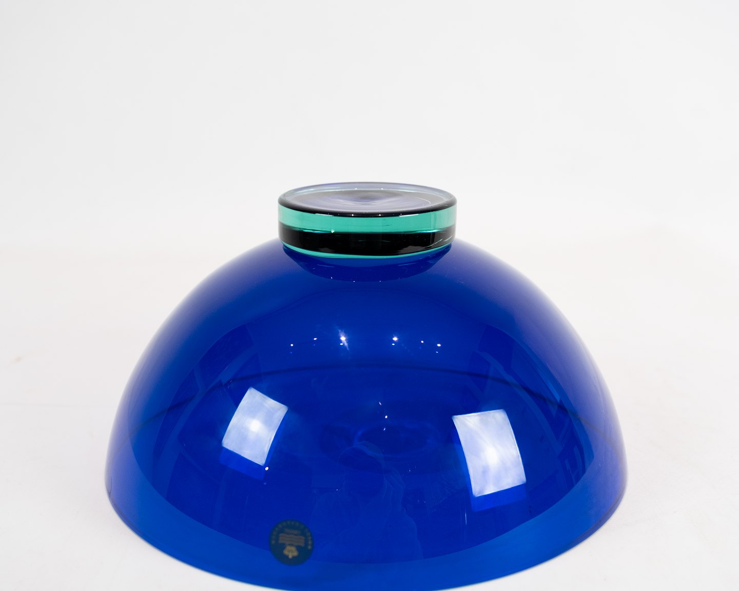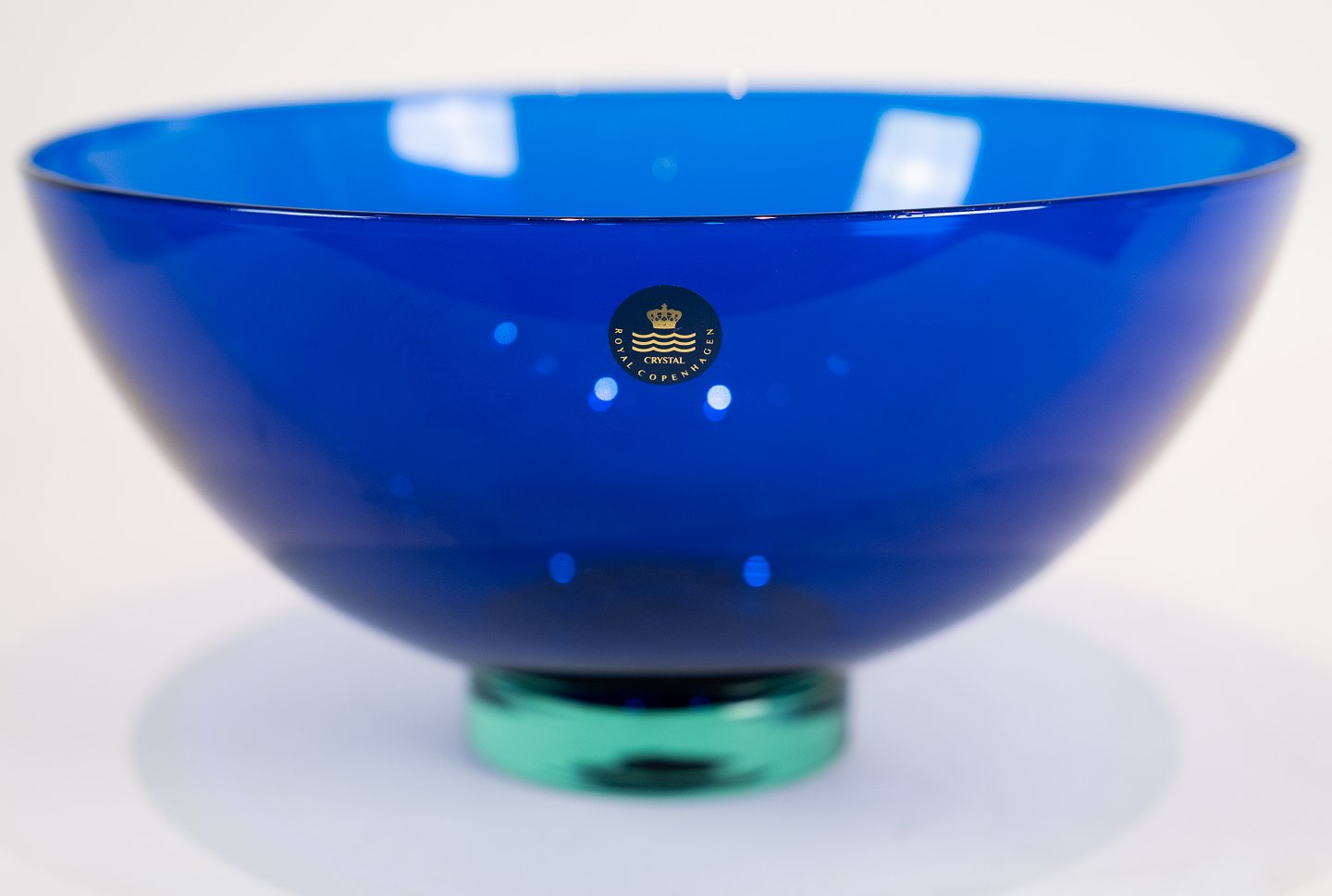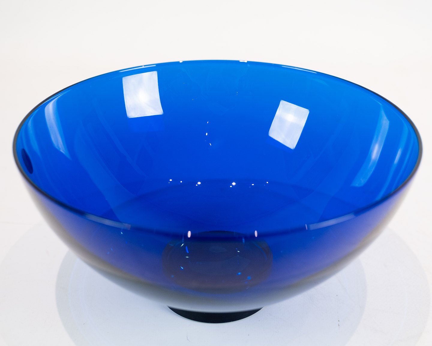 Stor mørkeblå glasskål af Holmegaard, i flot brugt stand.
