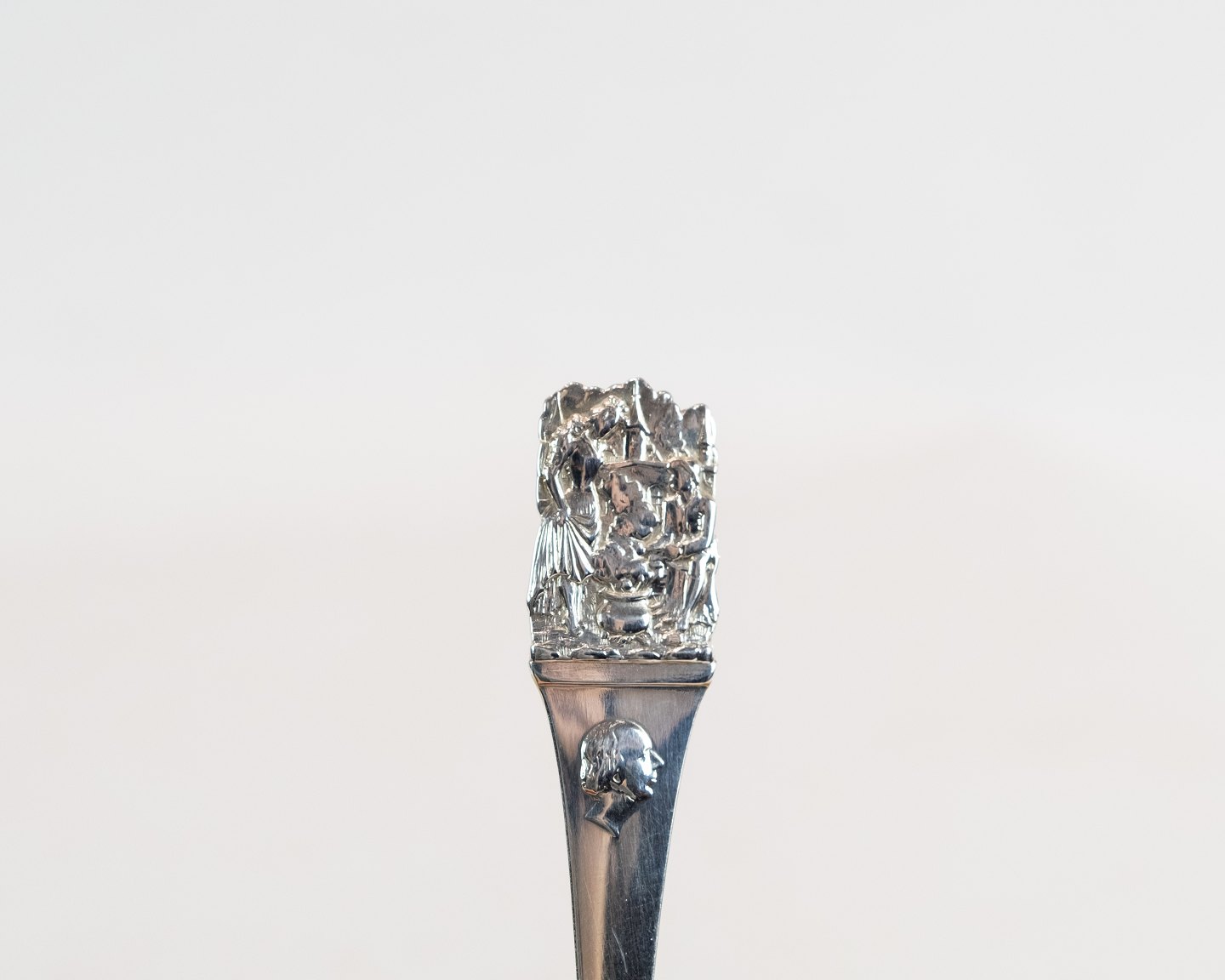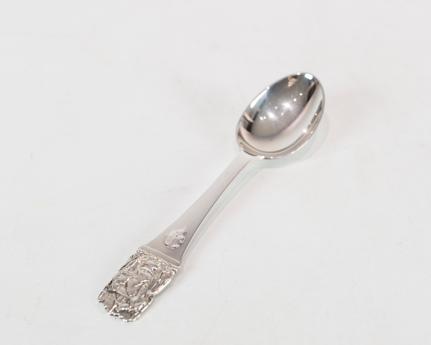 SoldChildren's spoon and fork with motif of H.C. Andersen's Clumsy Hans in hallmarked silver.