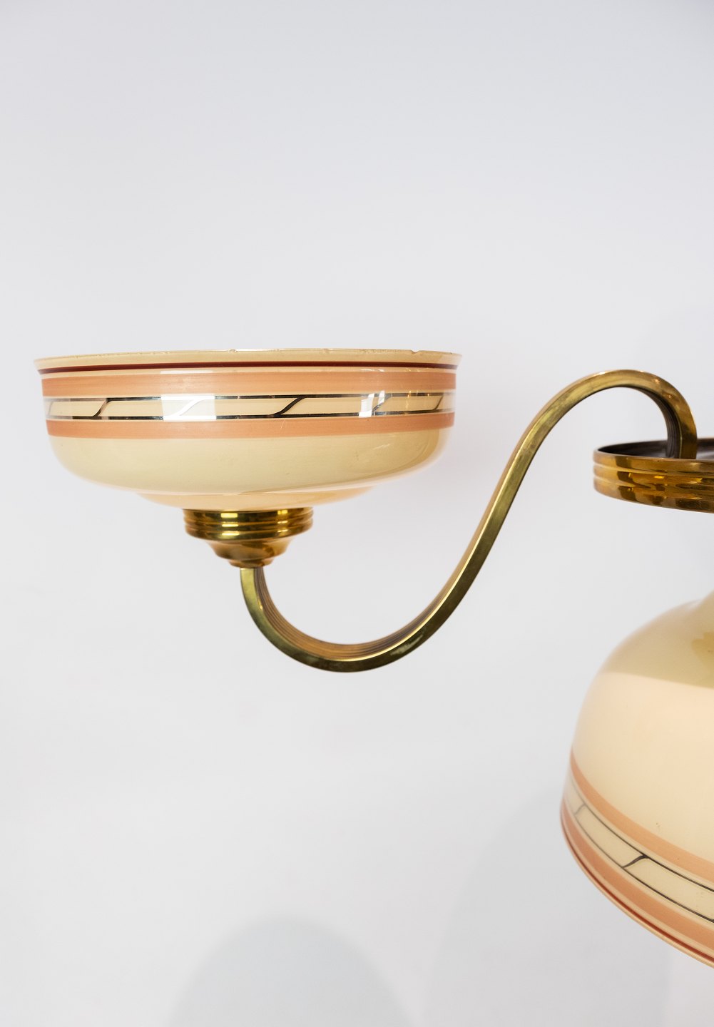 Ceiling pendant of brass and shades of opaline glass from the 1940s. The lamp is in great vintage condition.